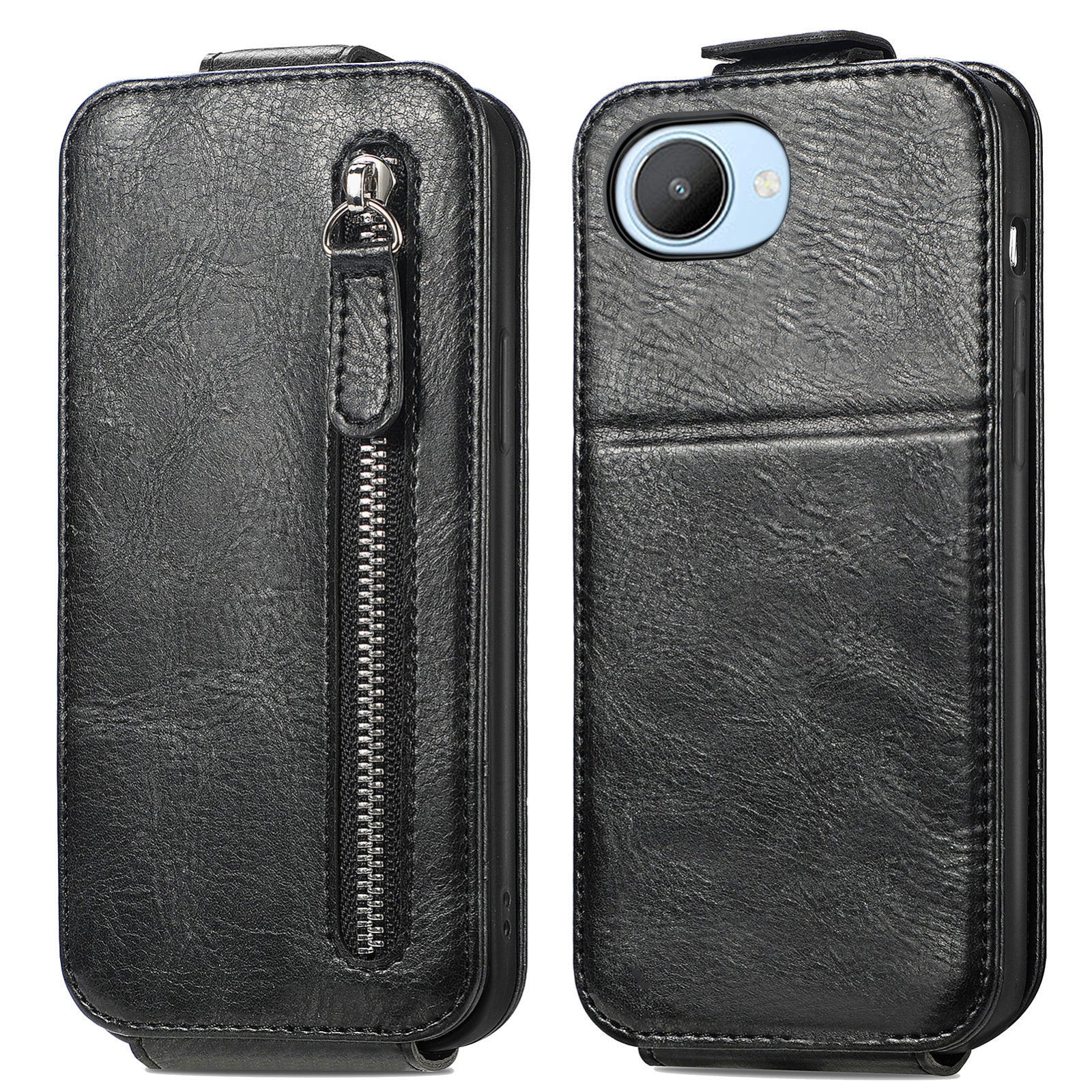 Realme C30 Zipper Wallet Case - Vertical Flip Leather Phone Cover with Multiple Card Slots and Stand
