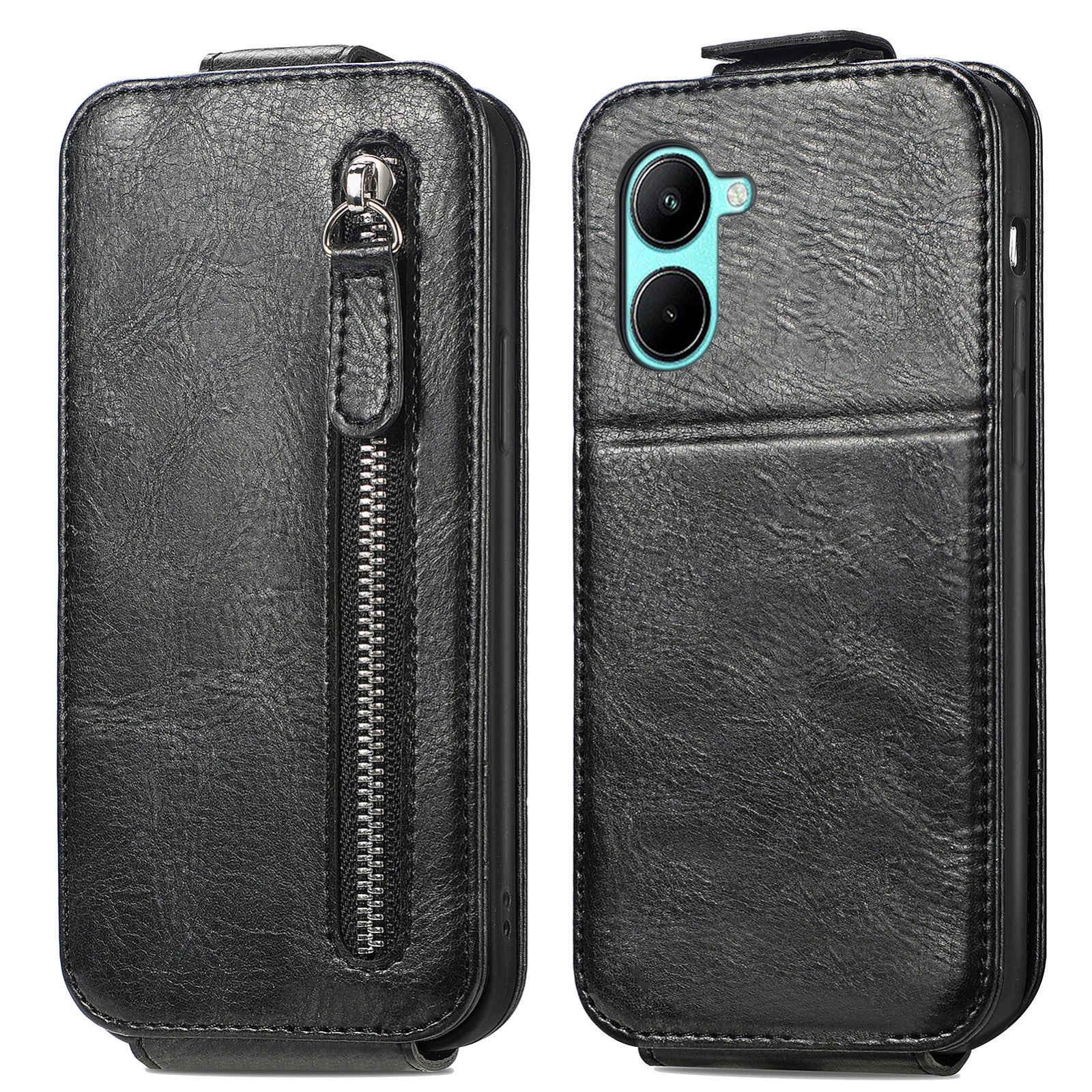 Realme C33 Zipper Wallet Case - Vertical Flip Leather Phone Cover with Multiple Card Slots and Stand