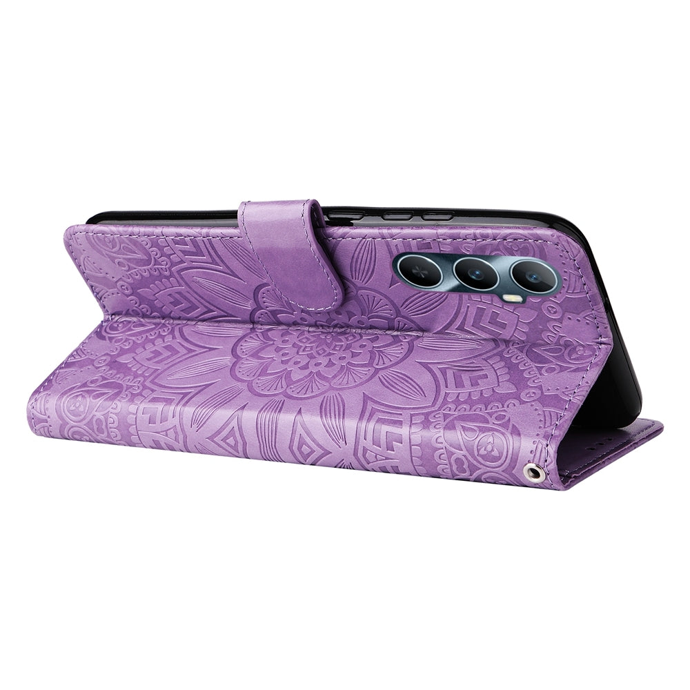 Realme C65 4G Sunflower Embossed Leather Wallet Phone Case with Kickstand and Card Holder