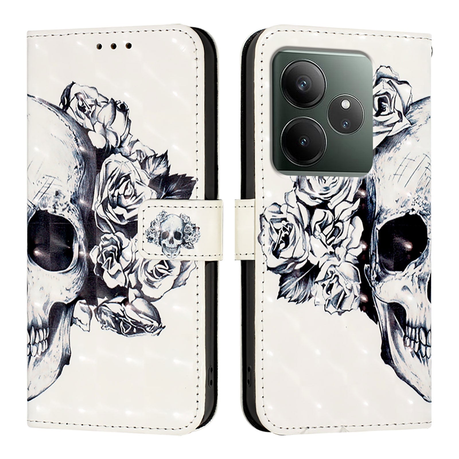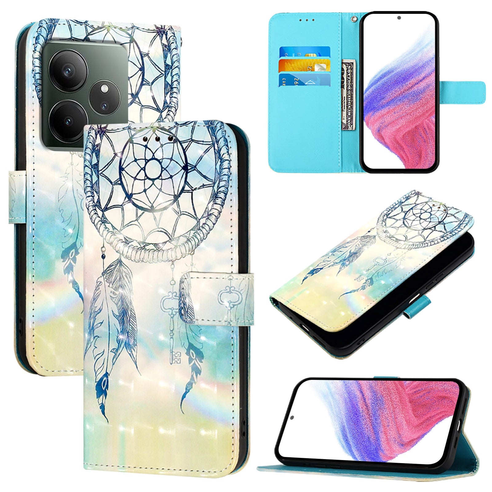 Realme GT 6 5G Global Leather Flip Phone Case with 3D Painted Design, Card Holder, Wallet & Stand Function - Durable Protection & Easy Access