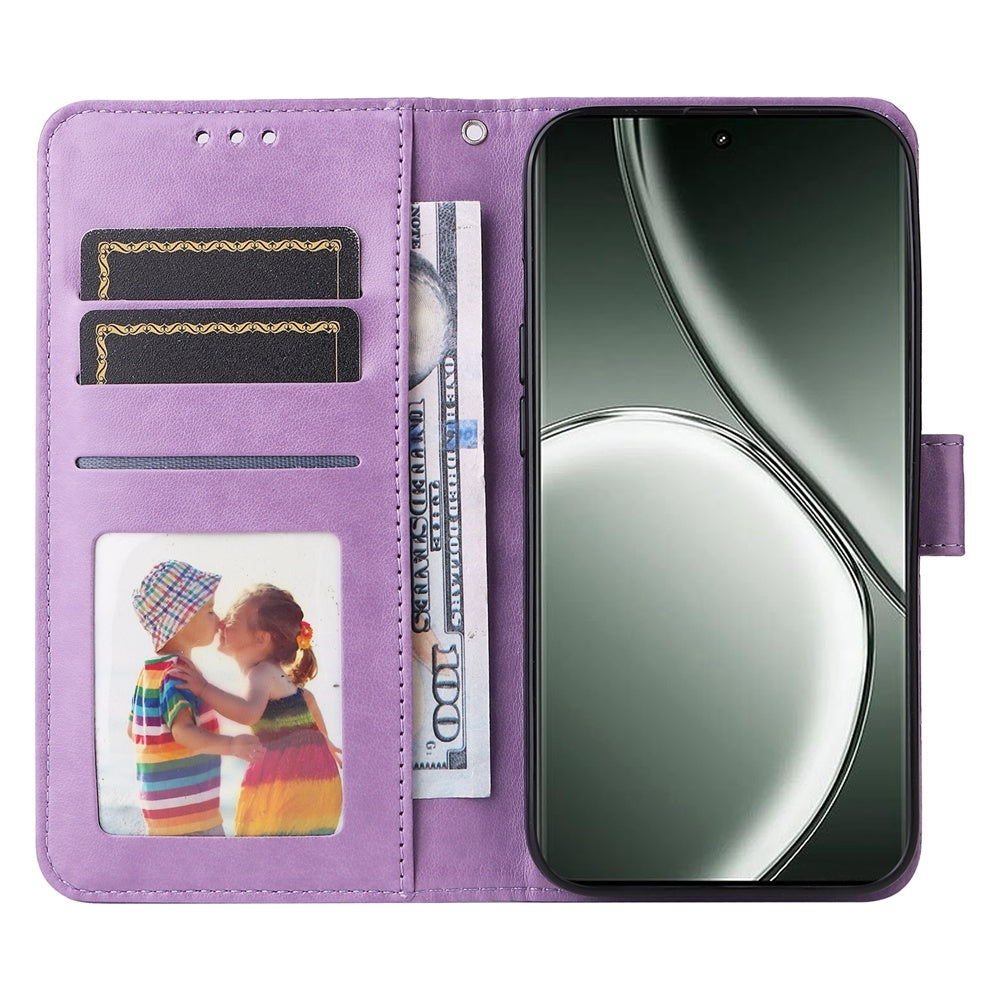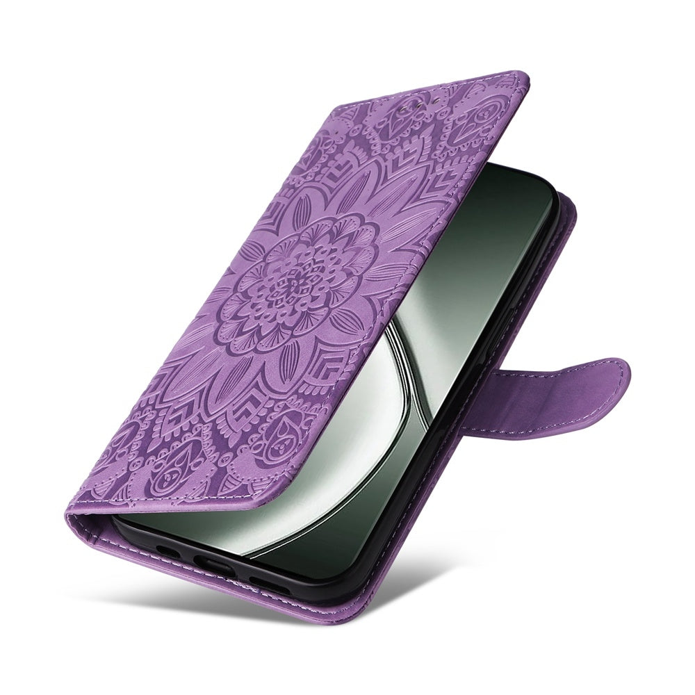 Realme GT 6 Sunflower Embossed Leather Wallet Phone Case with Kickstand and Card Holder