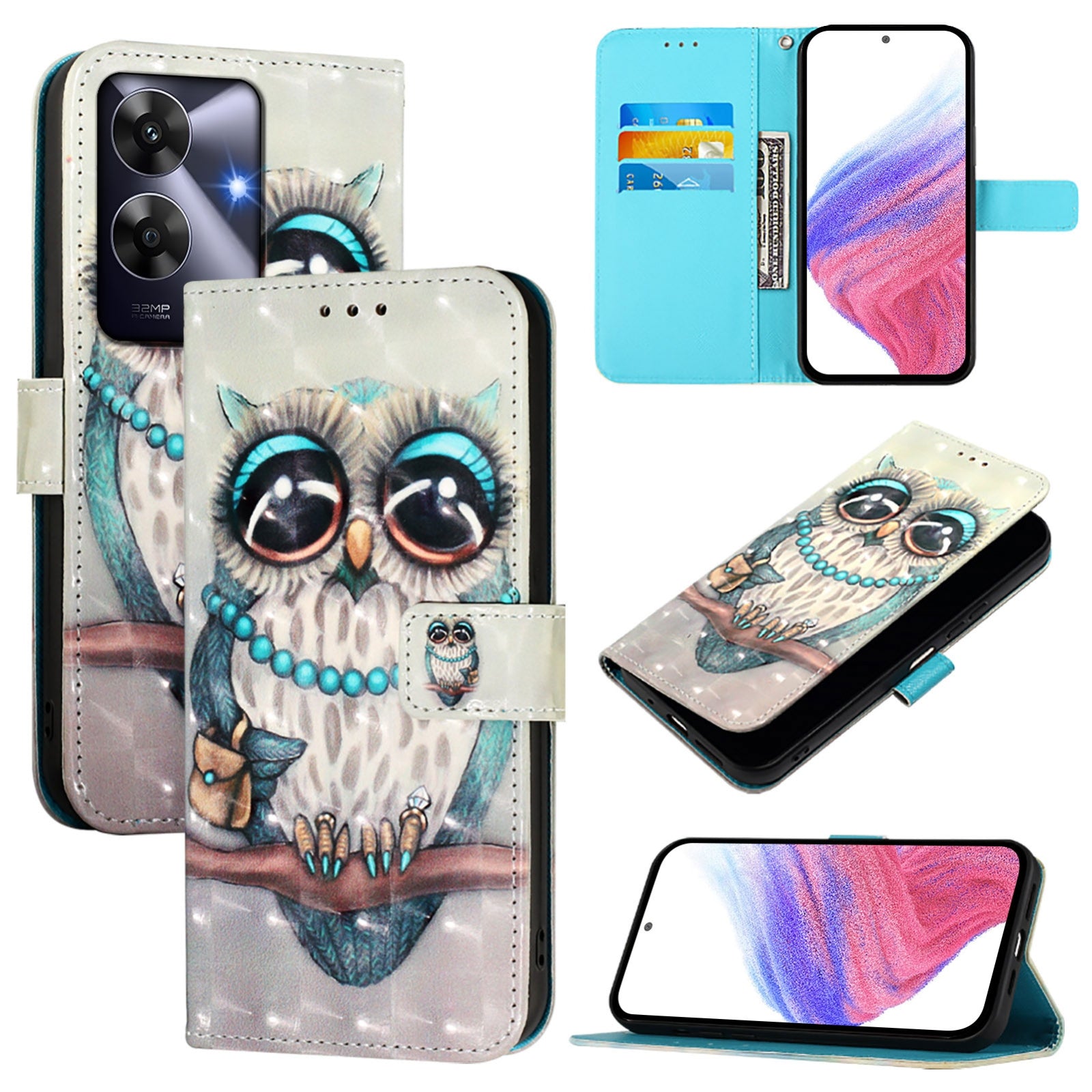 Realme Note 60 4G Global Leather Flip Phone Case with 3D Painted Design, Card Holder, Wallet & Stand Function - Durable Protection & Easy Access