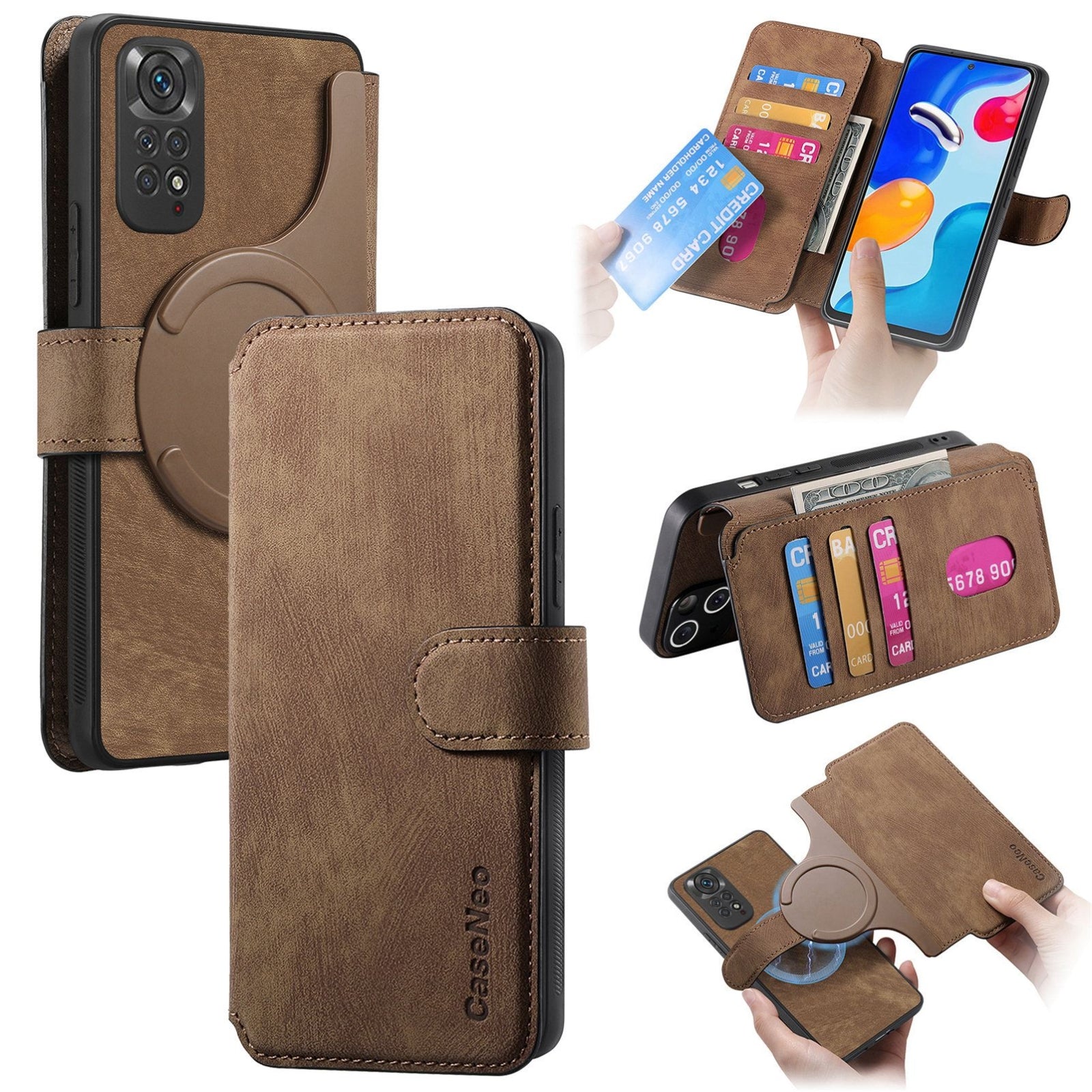 Redmi Note 11S 4G Retro Leather Phone Case with Enhanced MagSafe Wireless Charging, RFID Anti-theft Protection, Kickstand & Magnetic Lock Wallet Cover