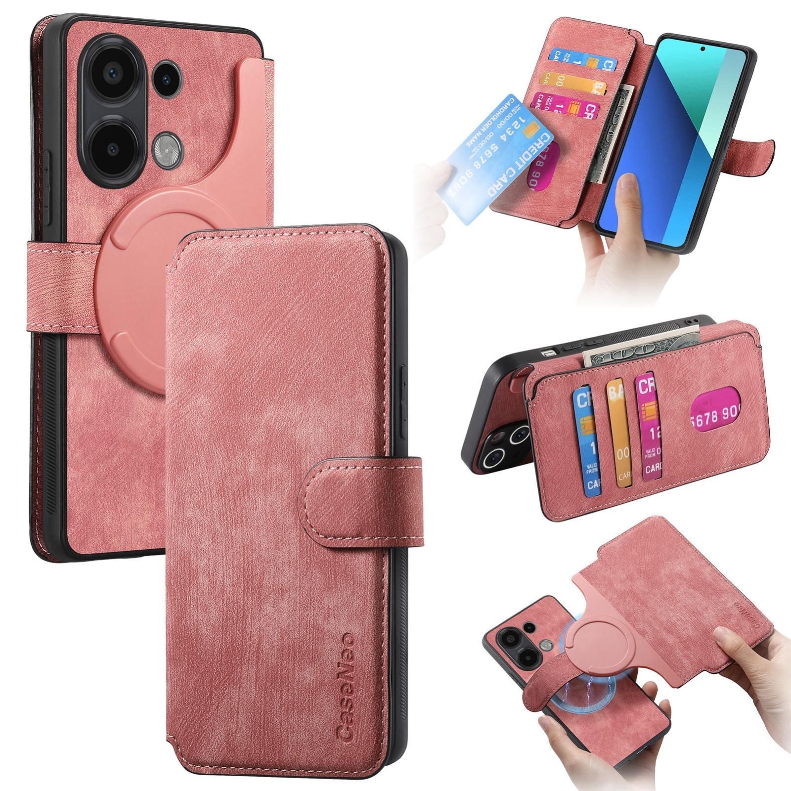 Redmi Note 13 4G Retro Leather Phone Case with Enhanced MagSafe Wireless Charging, RFID Anti-theft Protection, Kickstand & Magnetic Lock Wallet Cover