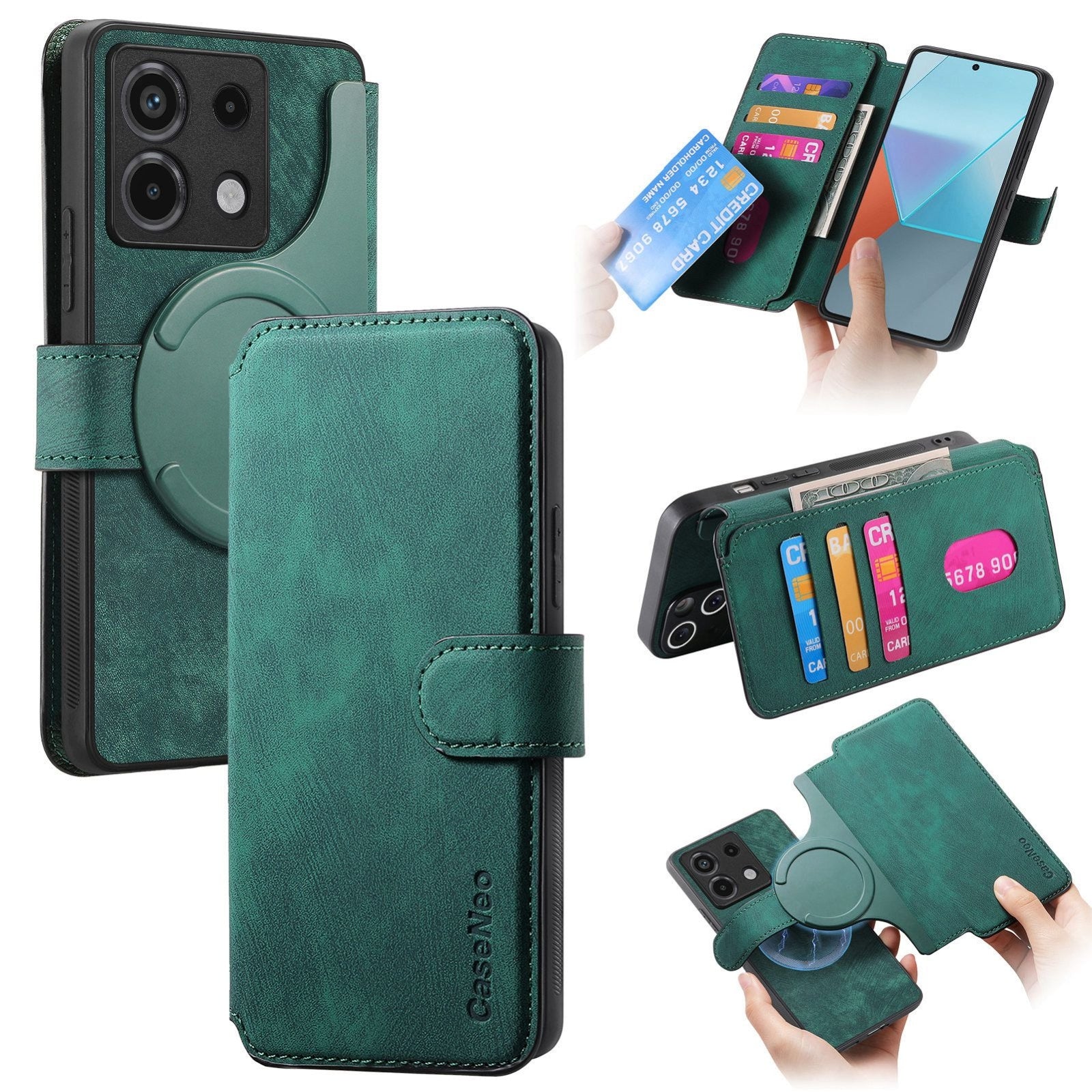 Redmi Note 13 Pro 5G Retro Leather Phone Case with Enhanced MagSafe Wireless Charging, RFID Anti-theft Protection, Kickstand & Magnetic Lock Wallet Cover