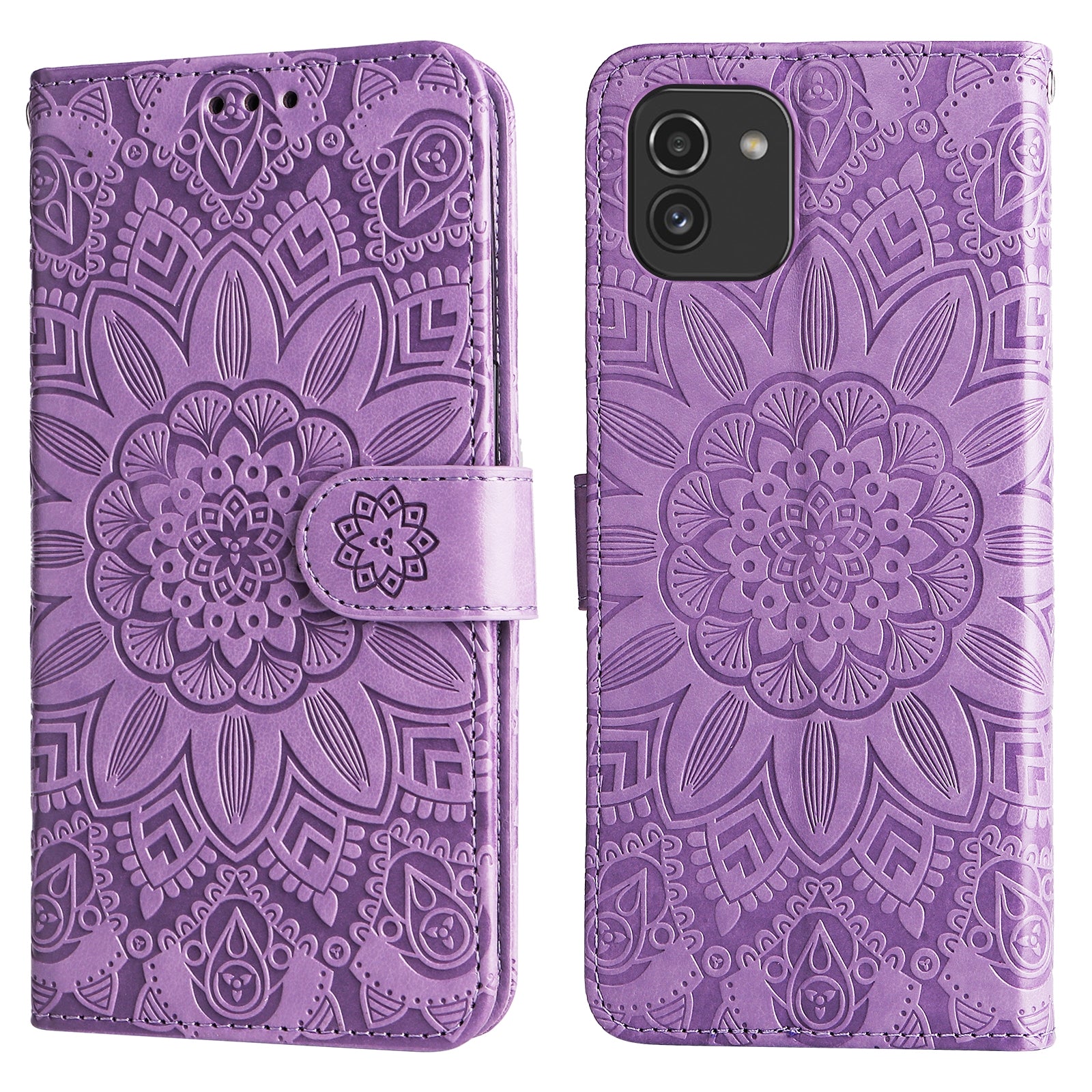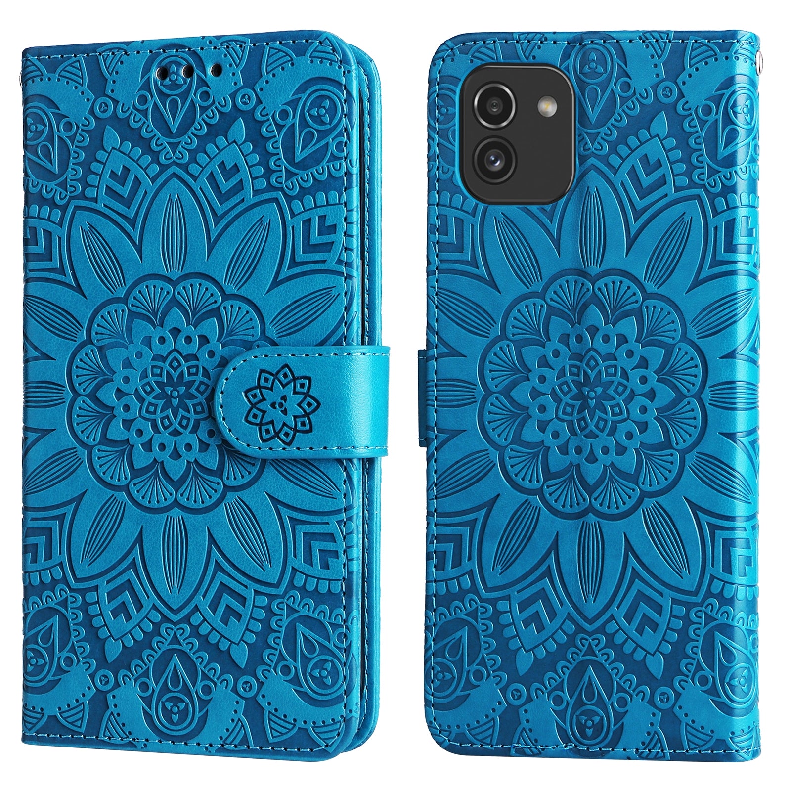 Samsung Galaxy A03 EU 166mm Sunflower Embossed Leather Wallet Phone Case with Kickstand and Card Holder