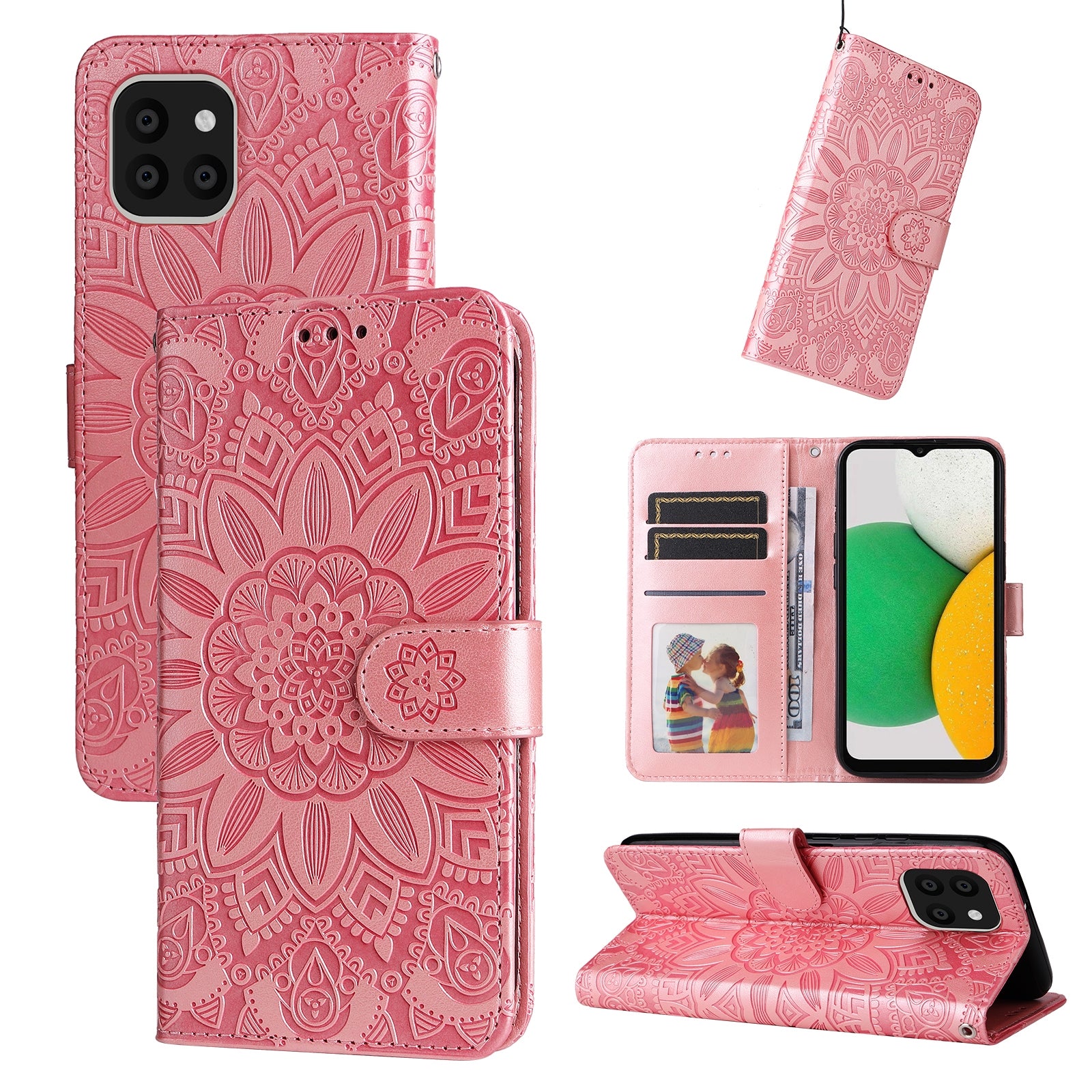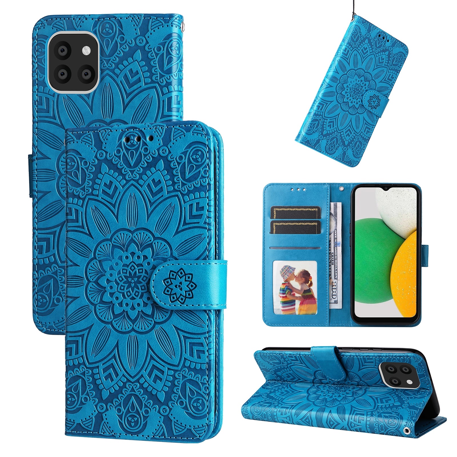 Samsung Galaxy A03 Global 164mm Sunflower Embossed Leather Wallet Phone Case with Kickstand and Card Holder