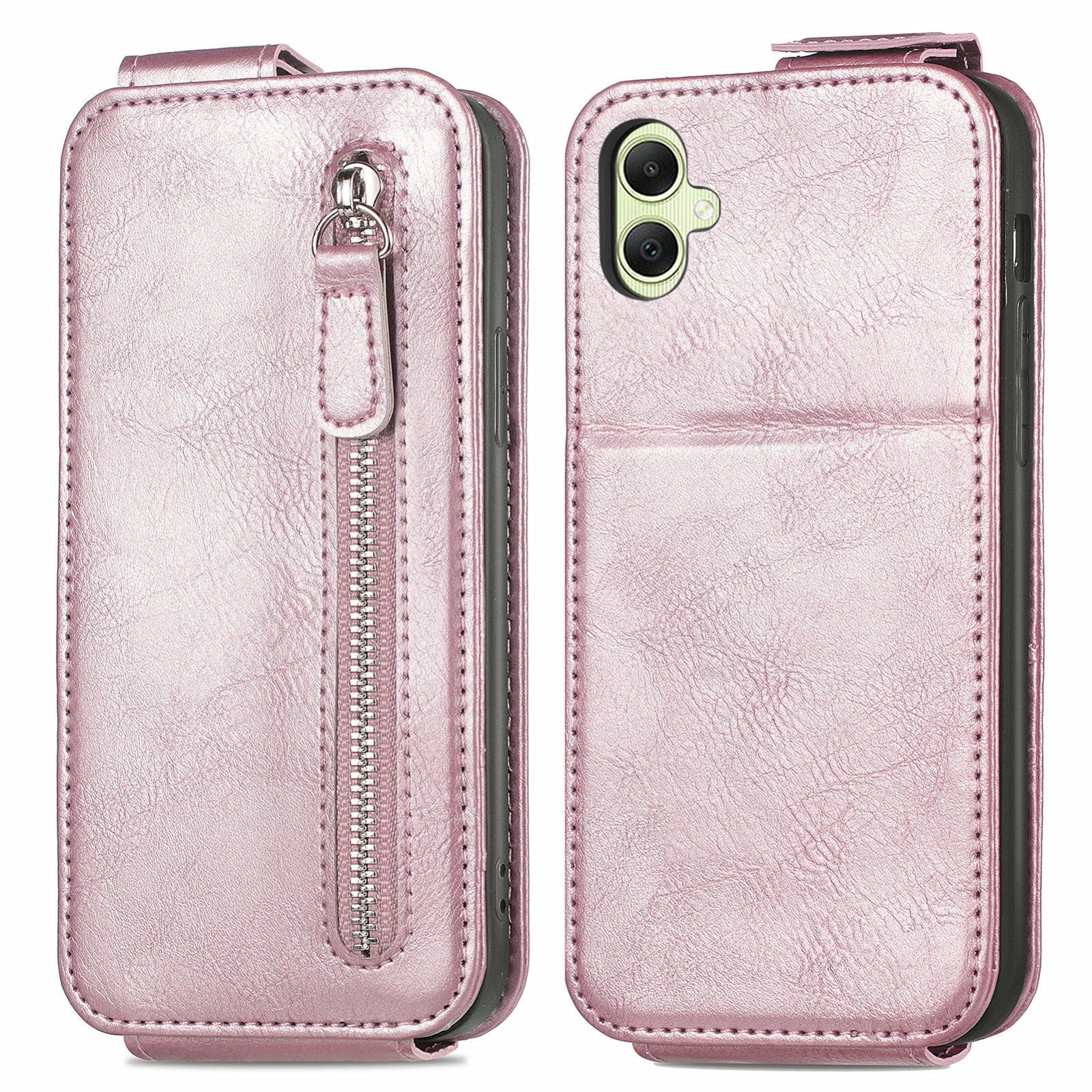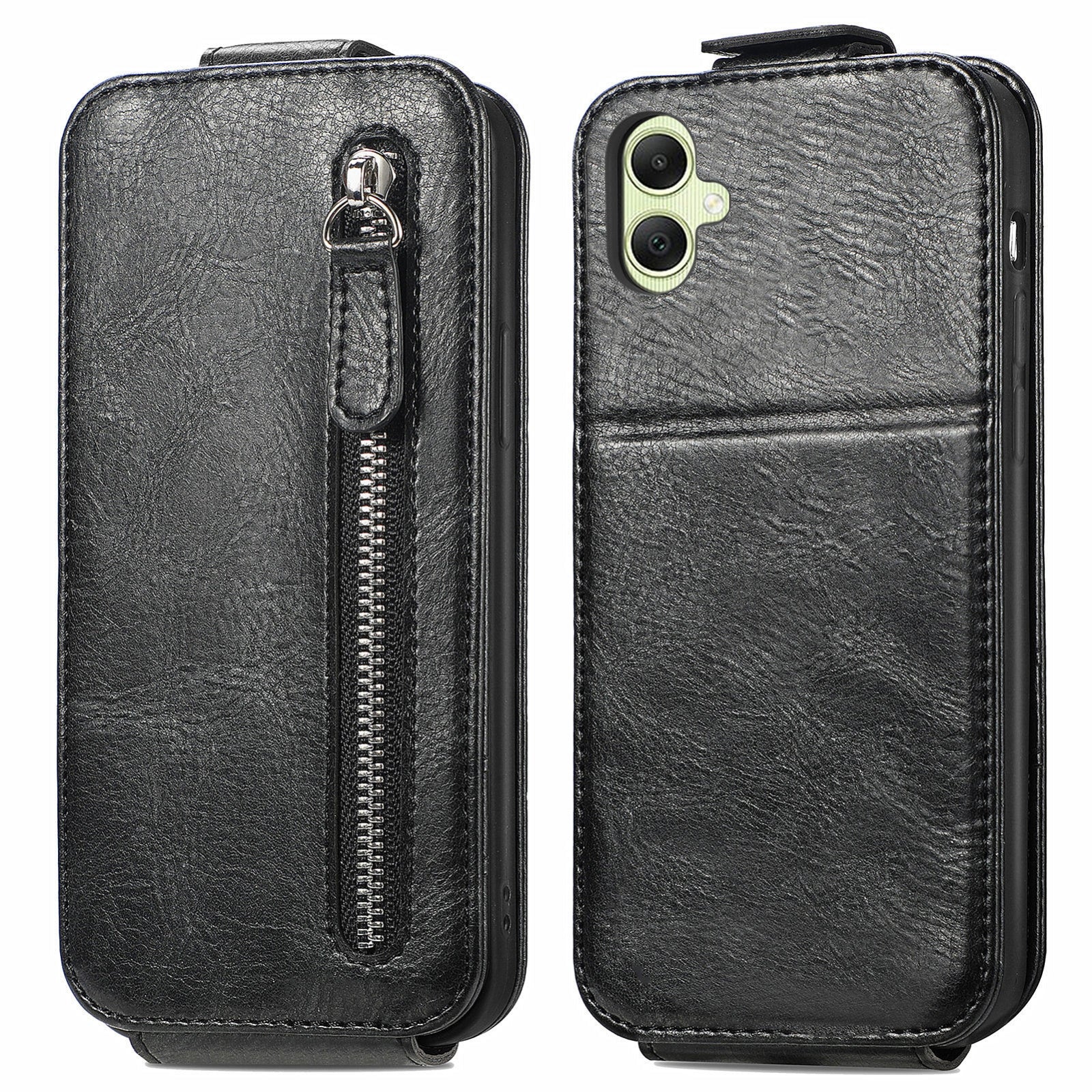 Samsung Galaxy A05 Zipper Wallet Case - Vertical Flip Leather Phone Cover with Multiple Card Slots and Stand