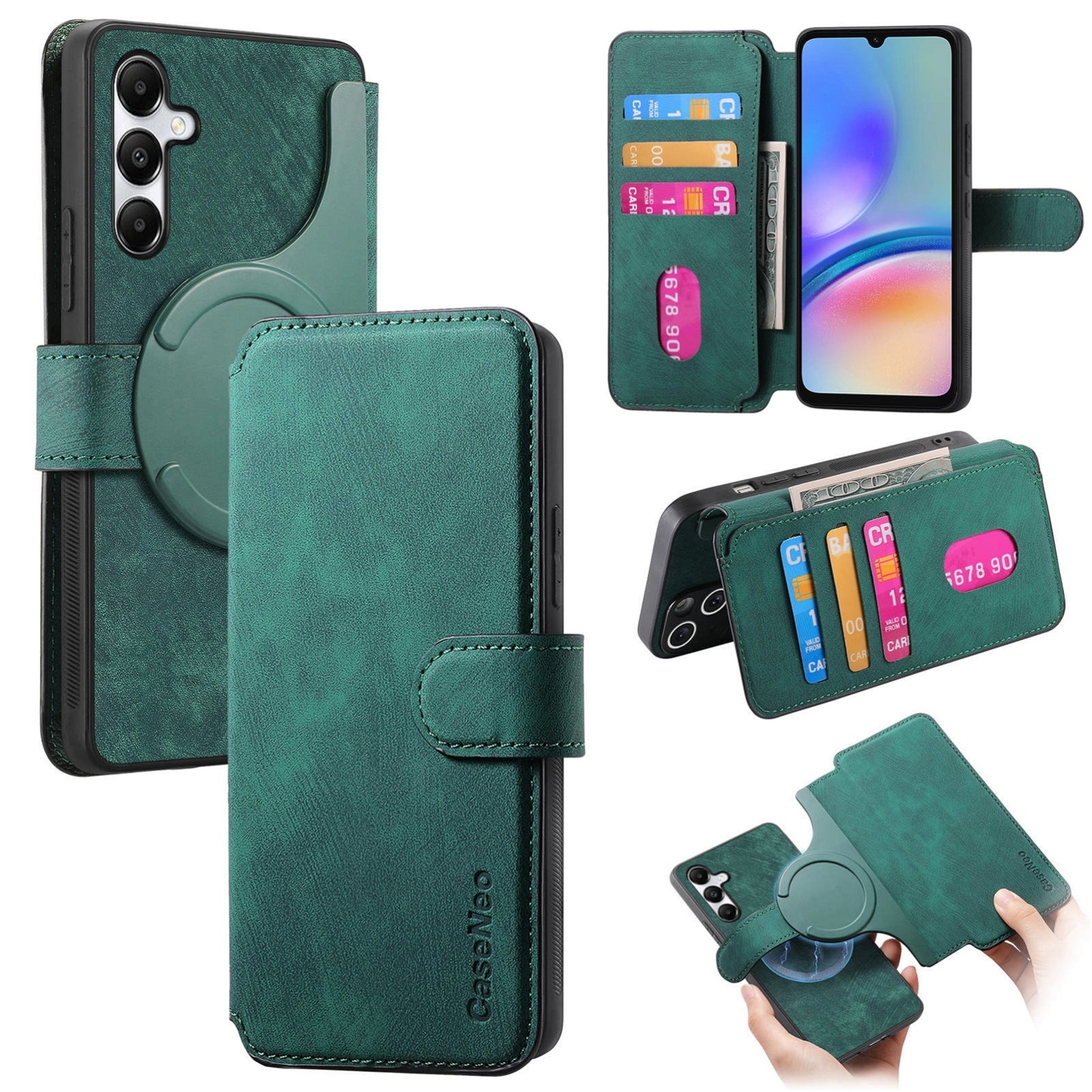 Samsung Galaxy A05s Retro Leather Phone Case with Enhanced MagSafe Wireless Charging, RFID Anti-theft Protection, Kickstand & Magnetic Lock Wallet Cover
