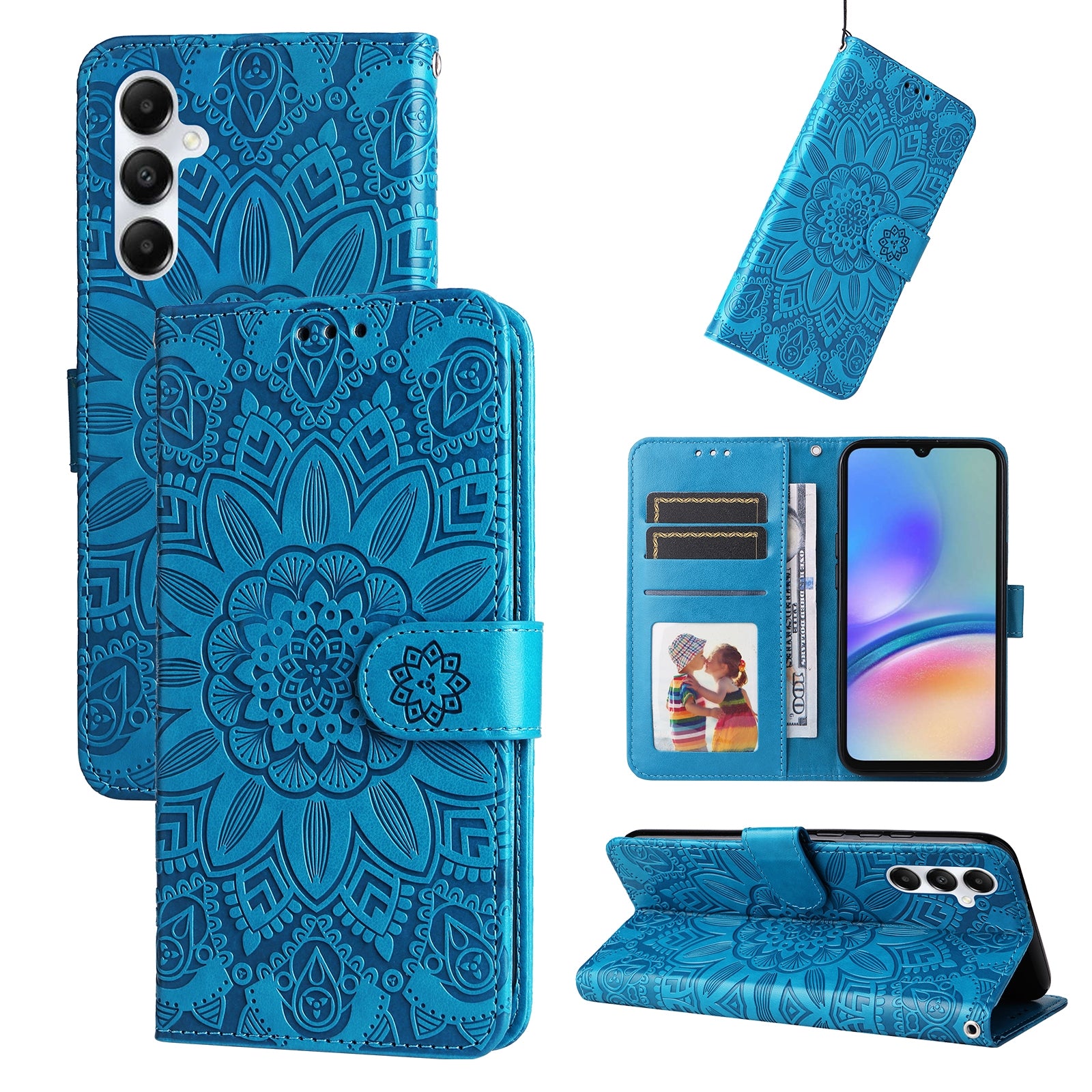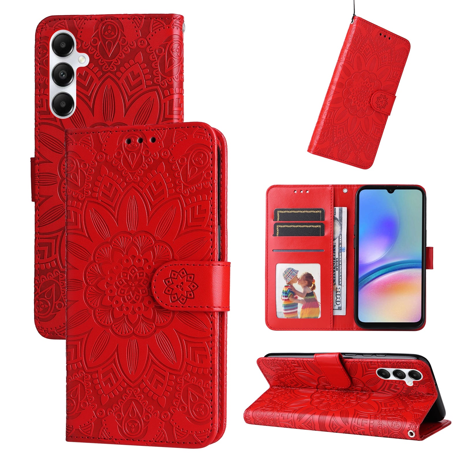 Samsung Galaxy A05s Sunflower Embossed Leather Wallet Phone Case with Kickstand and Card Holder