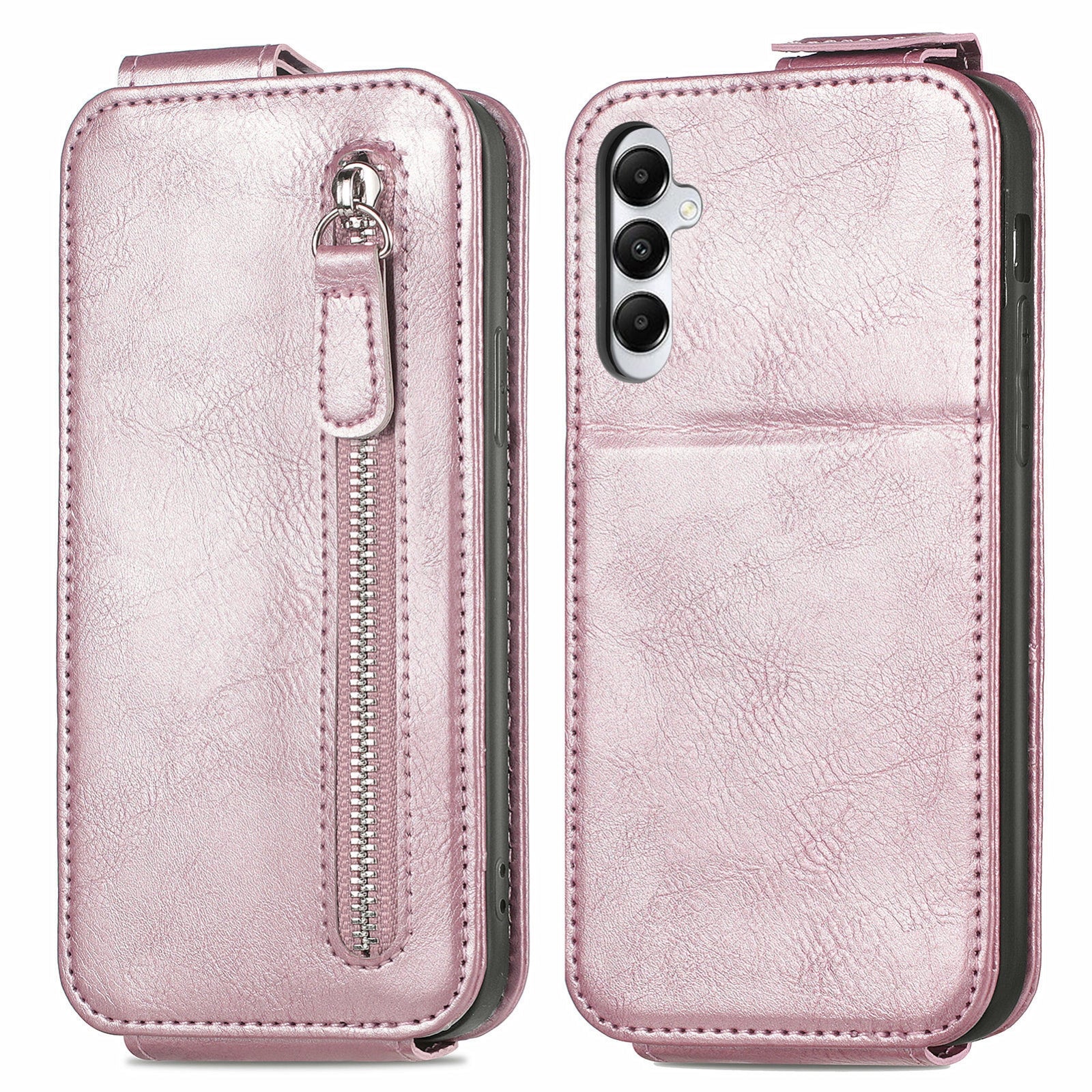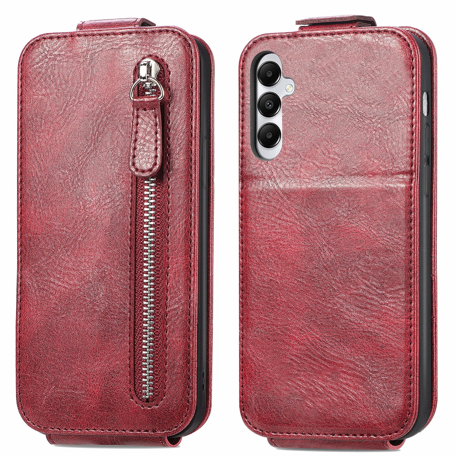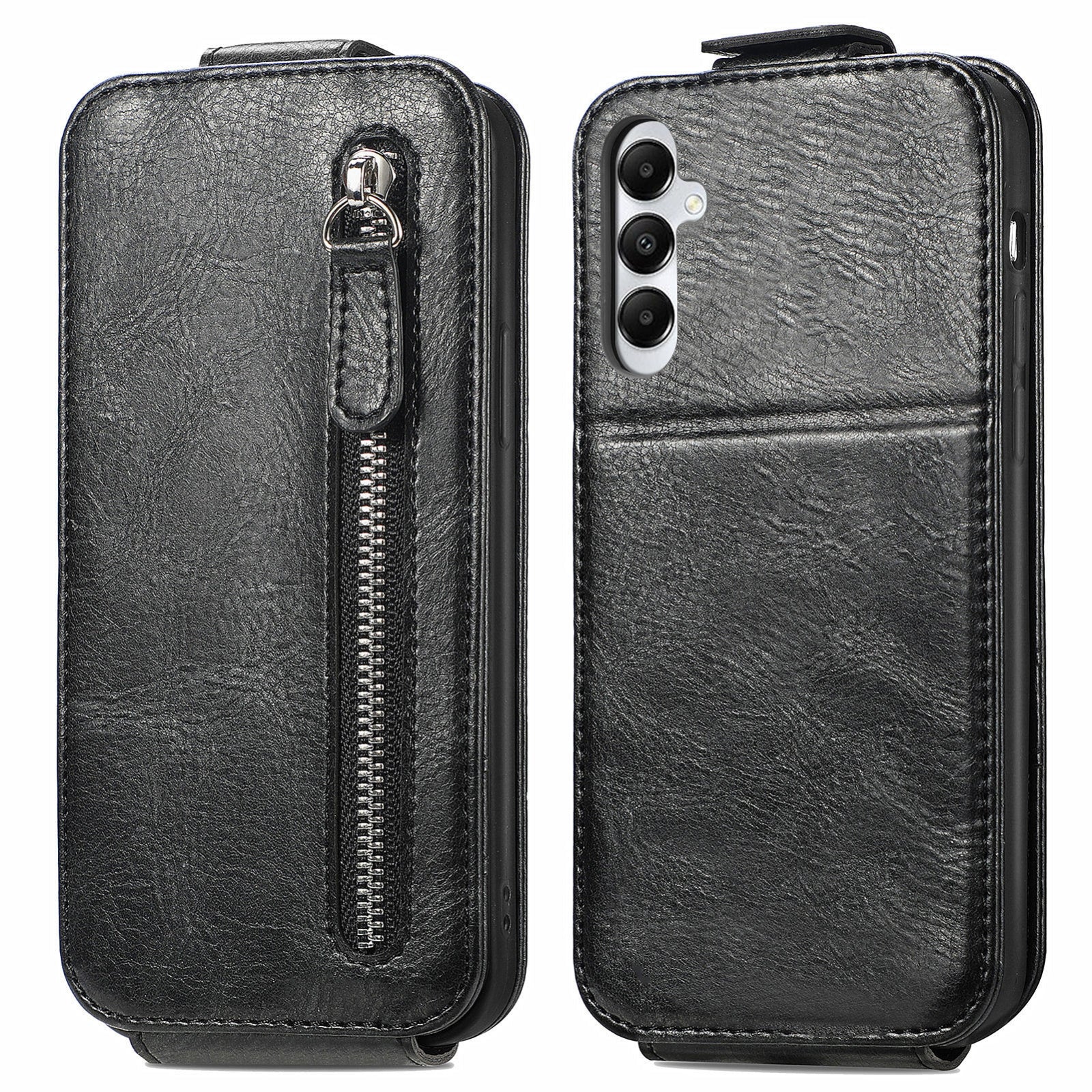 Samsung Galaxy A05s Zipper Wallet Case - Vertical Flip Leather Phone Cover with Multiple Card Slots and Stand