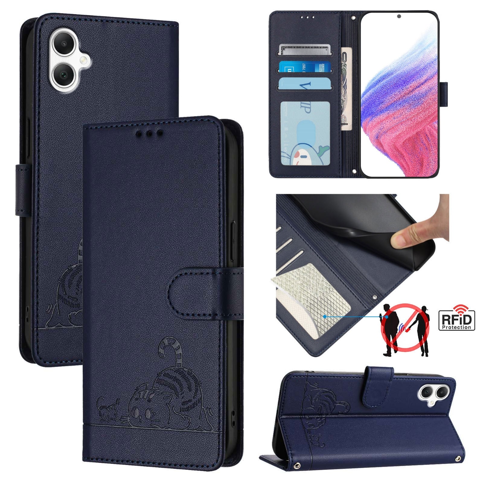 Explore the perfect blend of style and functionality with our Samsung Galaxy A06 4G Leather Phone Case. Featuring a charming cat and rat embossed pattern, this case offers multiple benefits: