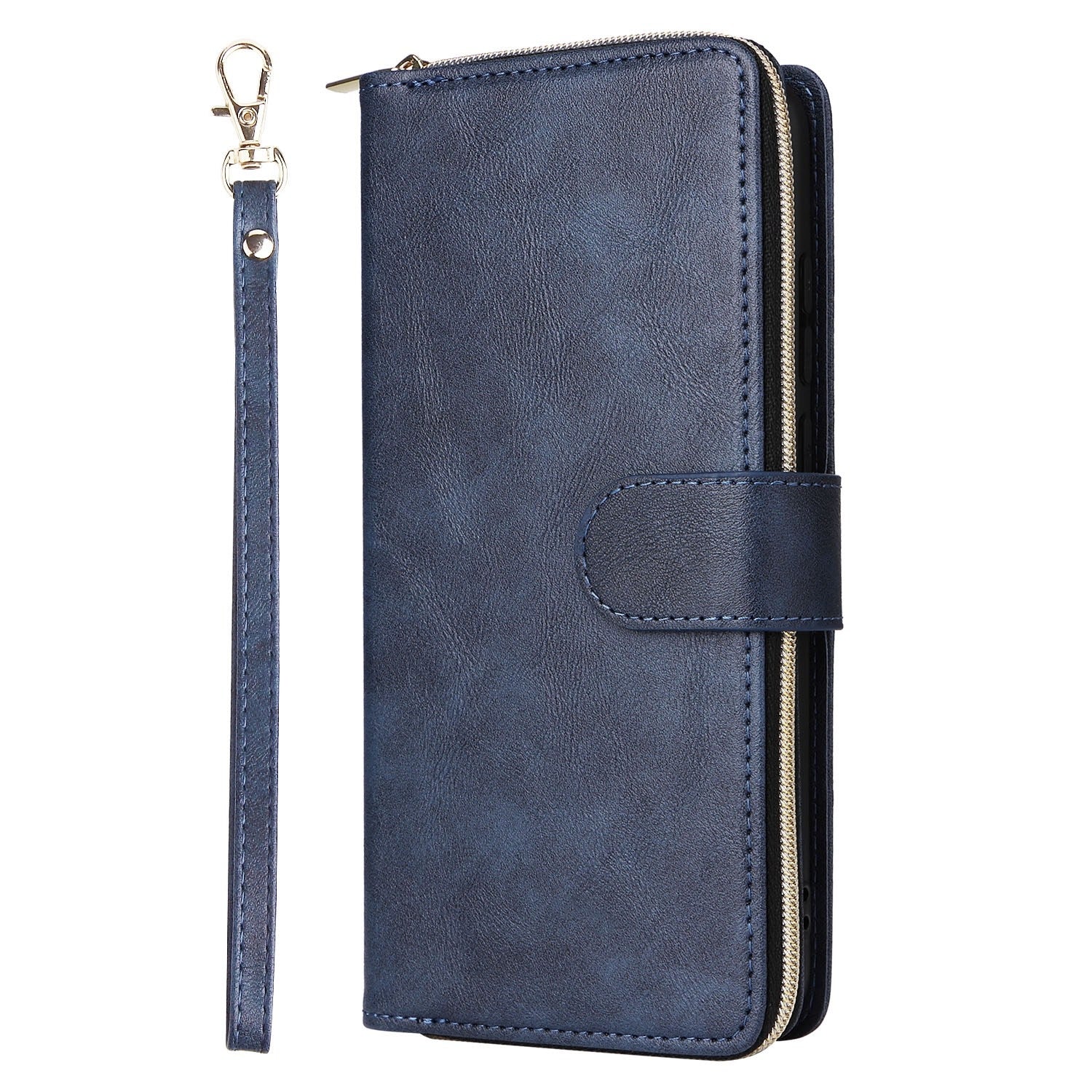 Samsung Galaxy A06 4G Leather Wallet Case with 9 Card Slots, Zipped Cash Pocket & Kickstand - Premium PU TPU Protective Cover with Wrist Strap