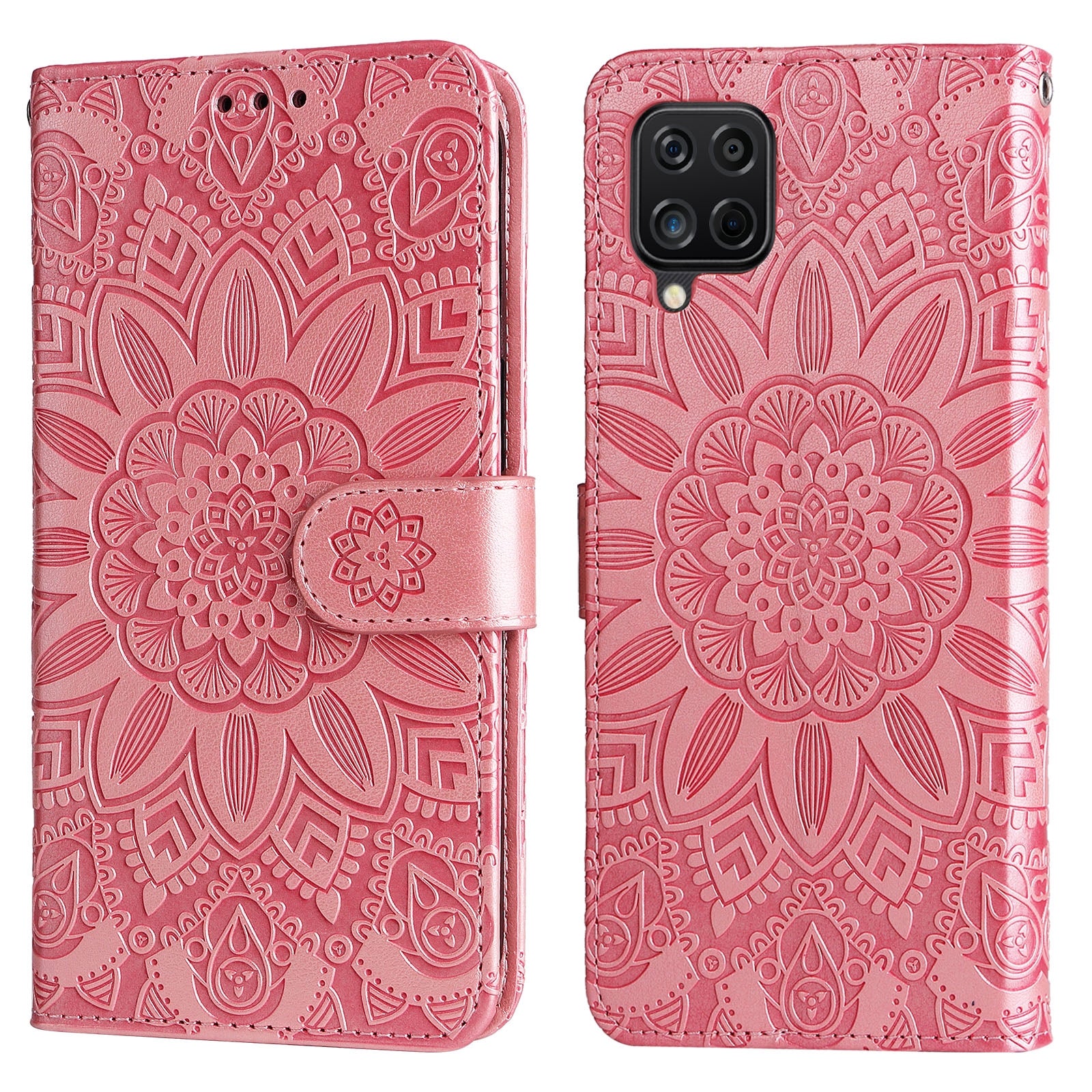 Samsung Galaxy A12 4G Sunflower Embossed Leather Wallet Phone Case with Kickstand and Card Holder