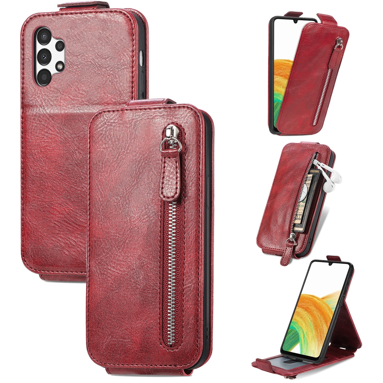Samsung Galaxy A13 4G Zipper Wallet Case - Vertical Flip Leather Phone Cover with Multiple Card Slots and Stand