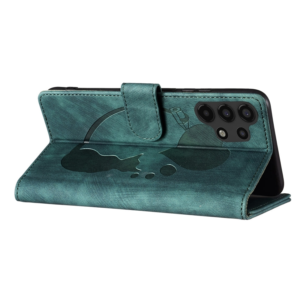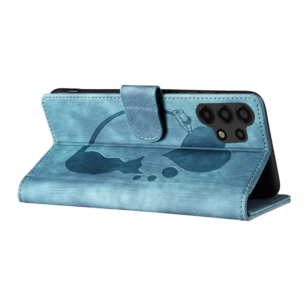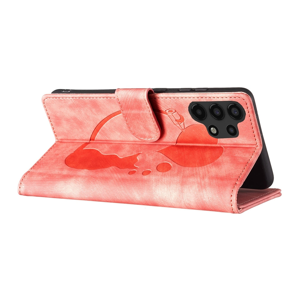 Samsung Galaxy A13 5G Heart & Cat Embossed Multi-Functional Pen Leather Wallet Phone Case with Stand and Card Slots