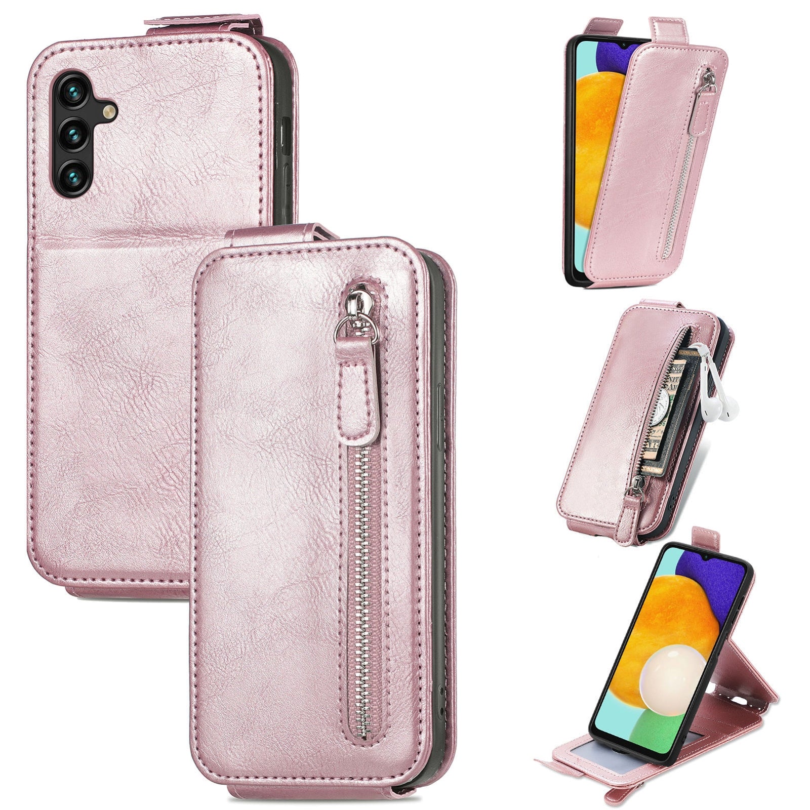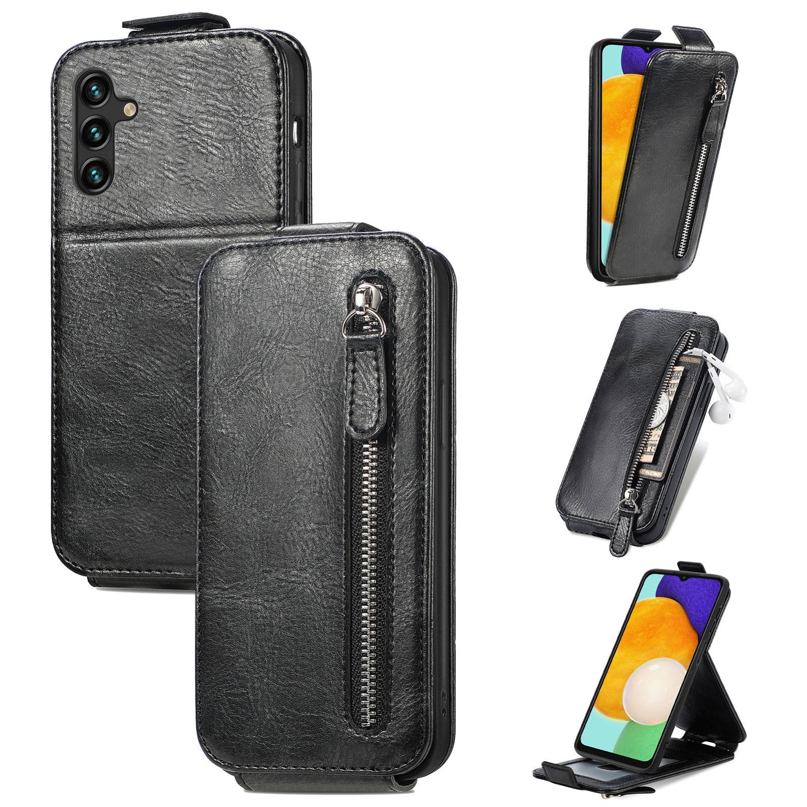 Samsung Galaxy A13 5G Zipper Wallet Case - Vertical Flip Leather Phone Cover with Multiple Card Slots and Stand