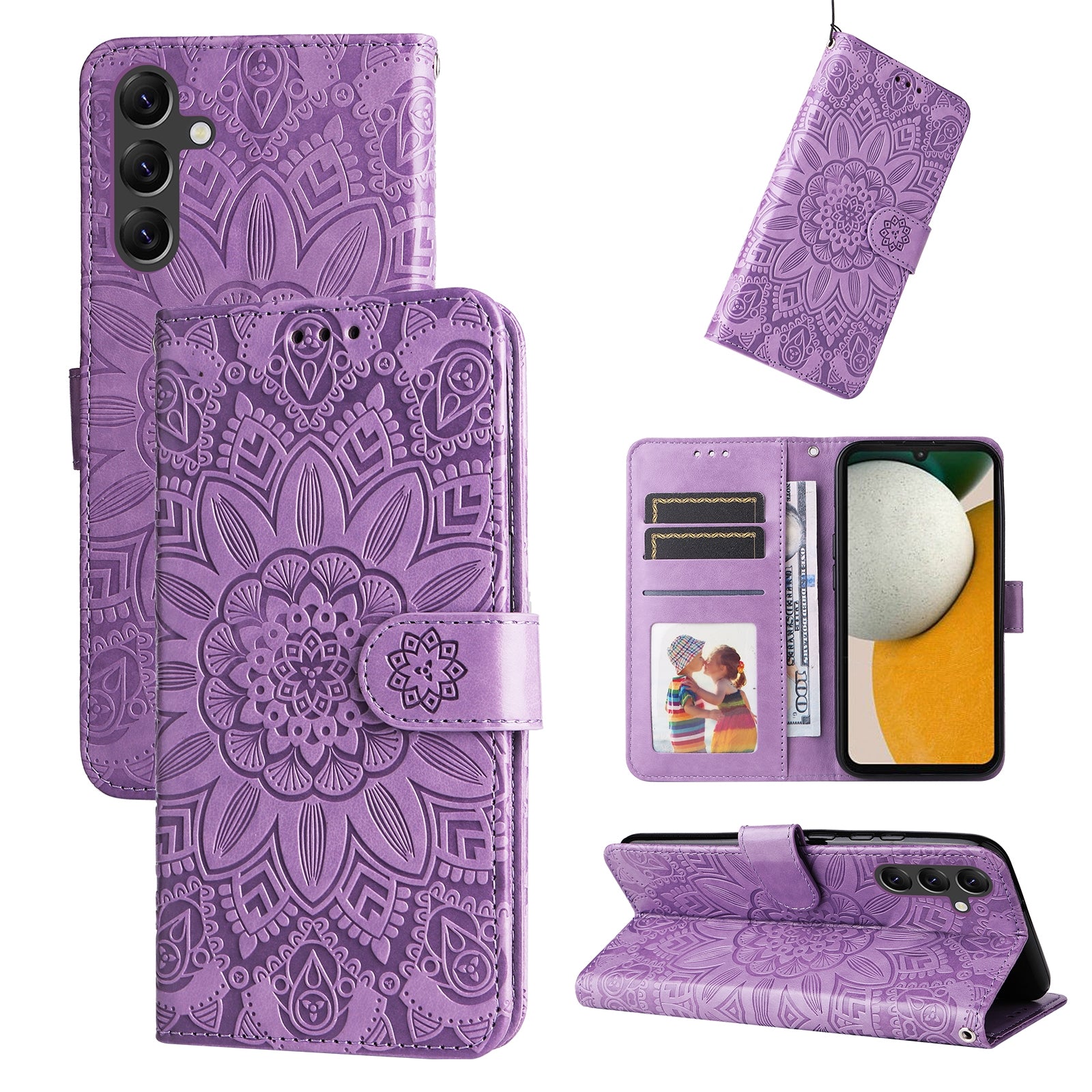 Samsung Galaxy A15 Sunflower Embossed Leather Wallet Phone Case with Kickstand and Card Holder