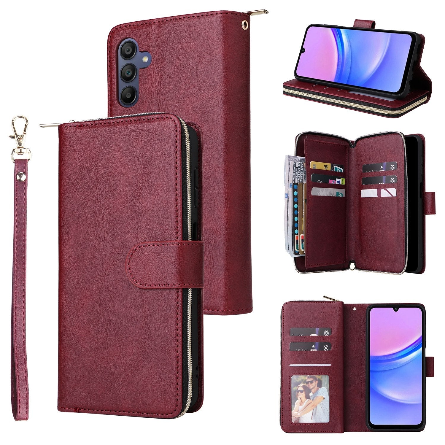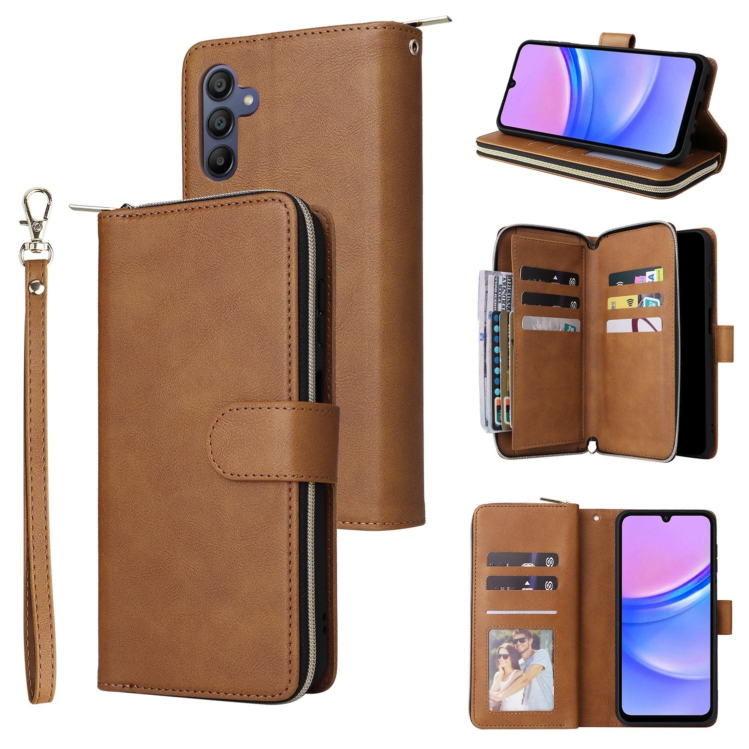 Samsung Galaxy A16 5G Leather Wallet Case with 9 Card Slots, Zipped Cash Pocket & Kickstand - Premium PU TPU Protective Cover with Wrist Strap