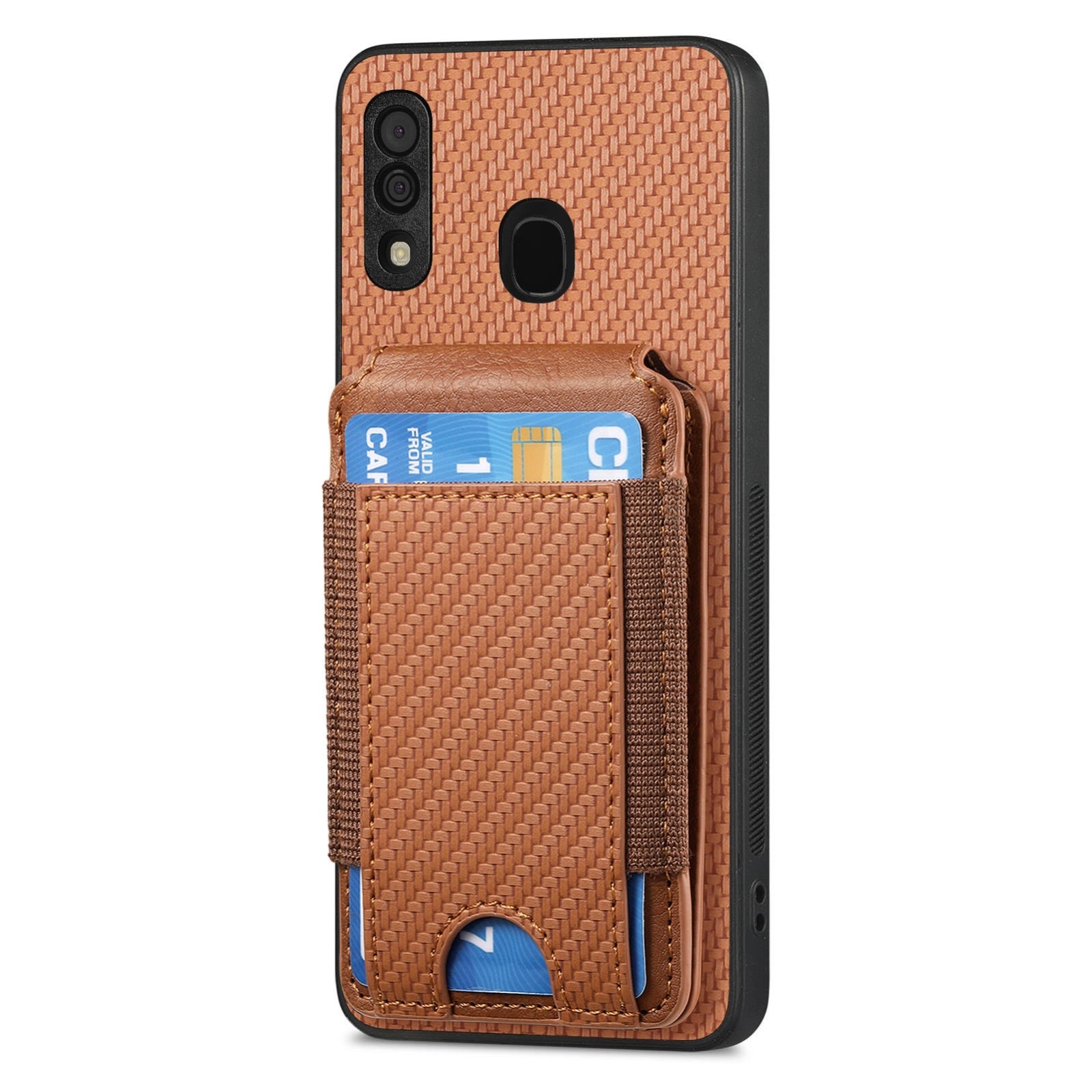 Samsung Galaxy A20s Vertical Flip Wallet Stand Phone Case with Carbon Fibre Pattern