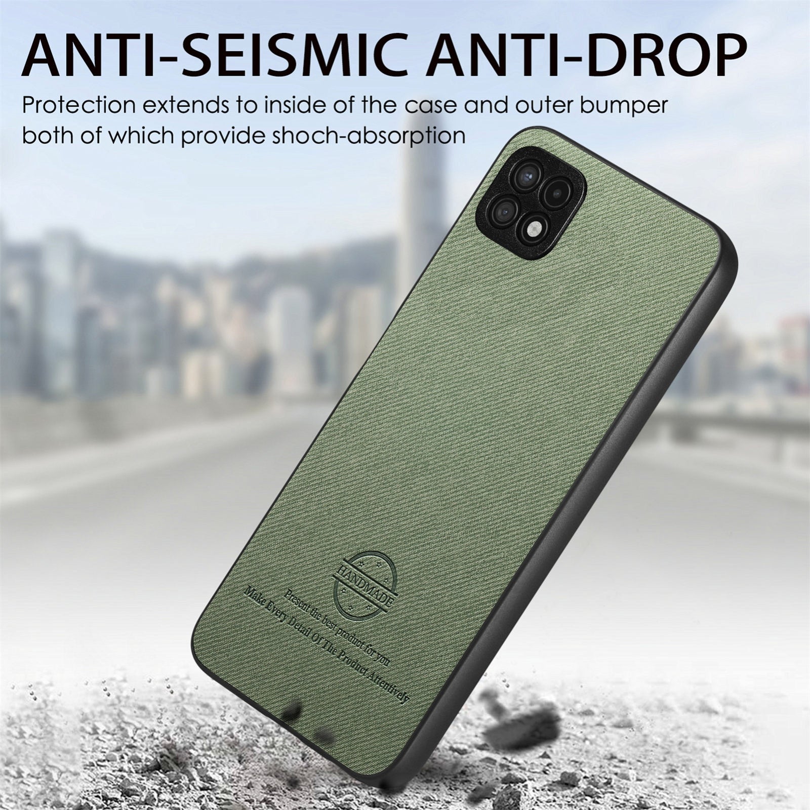Samsung Galaxy A22 4G Case - Vegan Leather and Twill Fabric Skin with Anti-Scratch and Drop Protection Back Phone Case