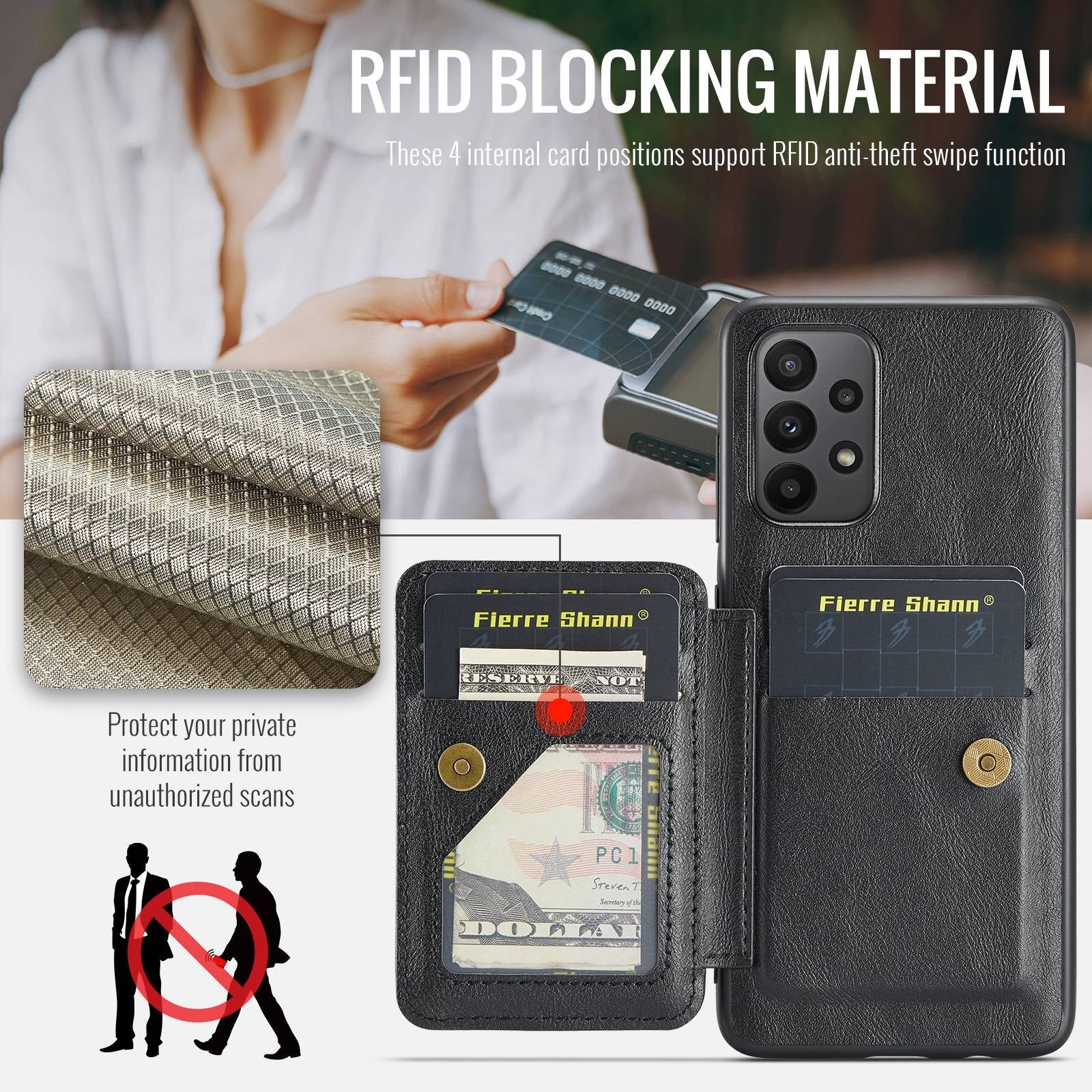 - RFID Blocking Material: The integrated RFID shielding prevents others from maliciously reading and stealing your personal information.