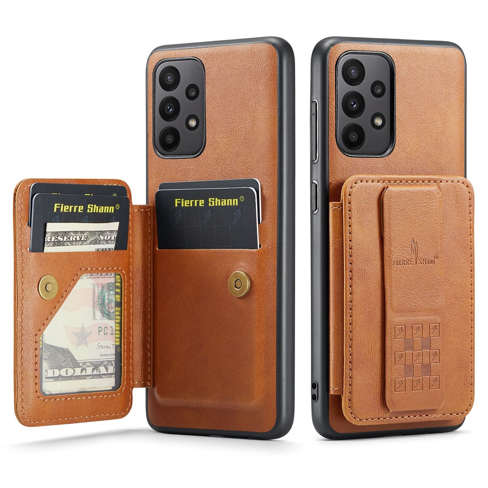 Experience the perfect blend of style and functionality with the Samsung Galaxy A23 5G Card Holder Back Phone Case by Fierre Shann. Crafted from premium oil wax cow leather, this case offers an array of impressive features: