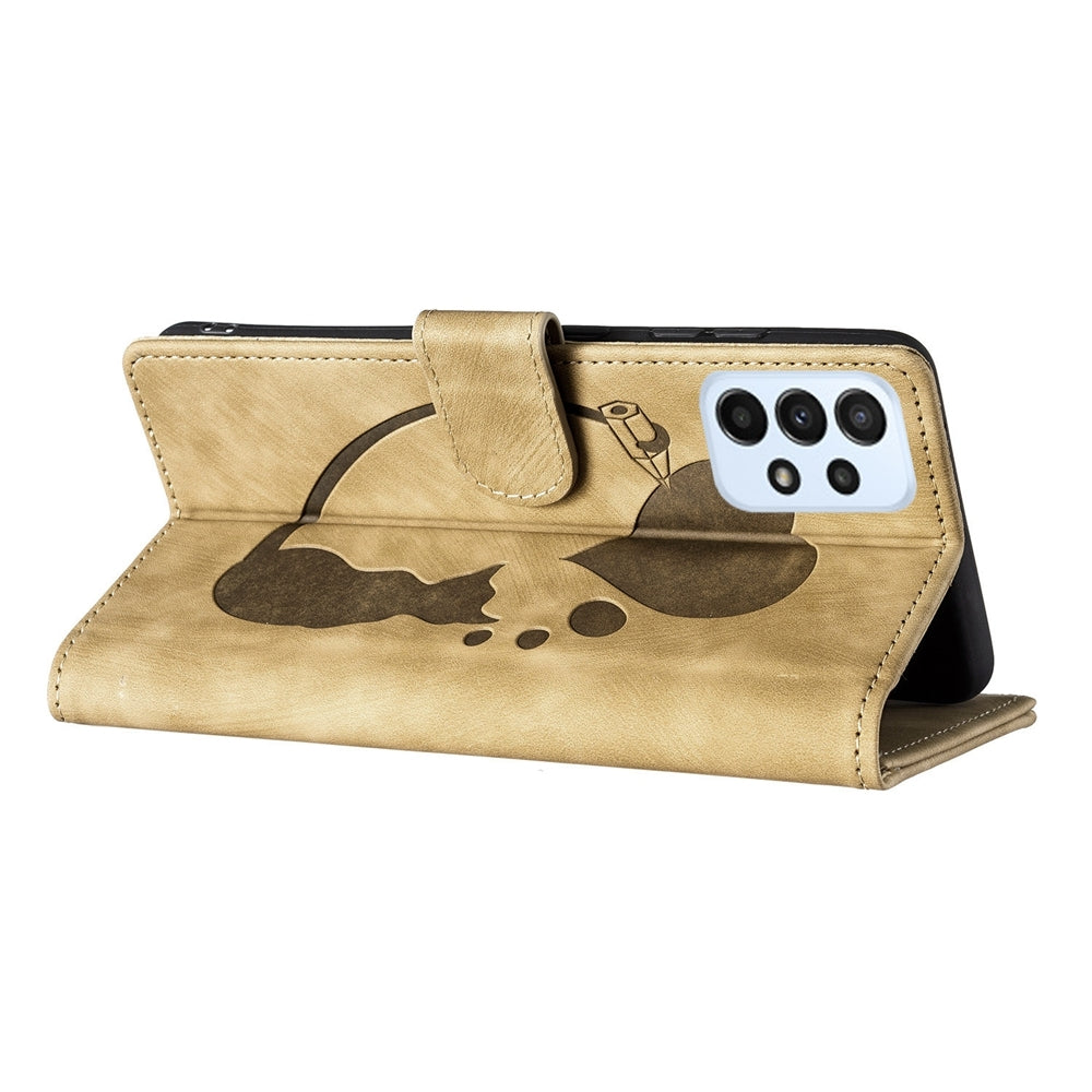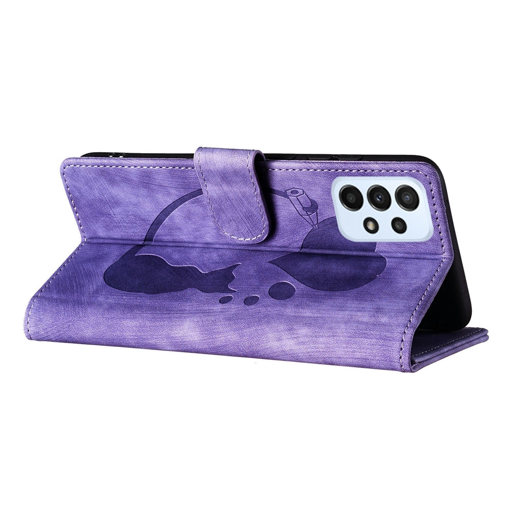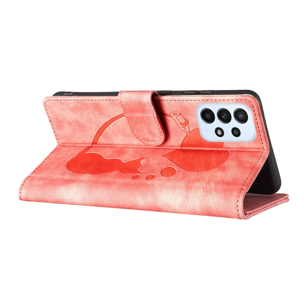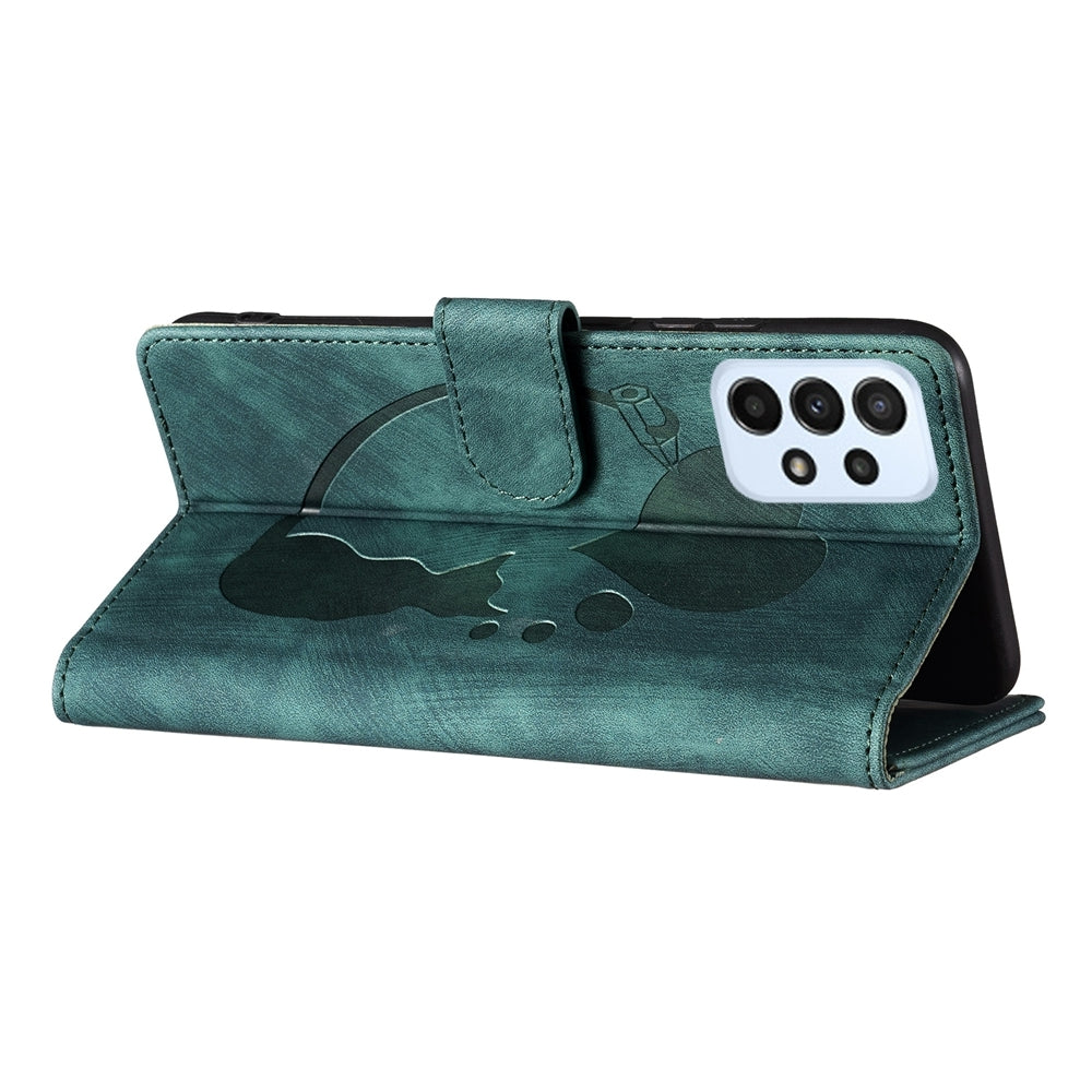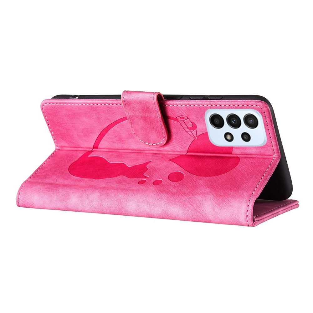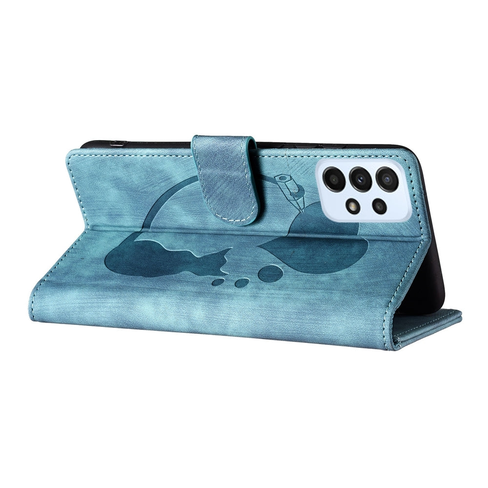 Samsung Galaxy A23 5G Heart & Cat Embossed Multi-Functional Pen Leather Wallet Phone Case with Stand and Card Slots