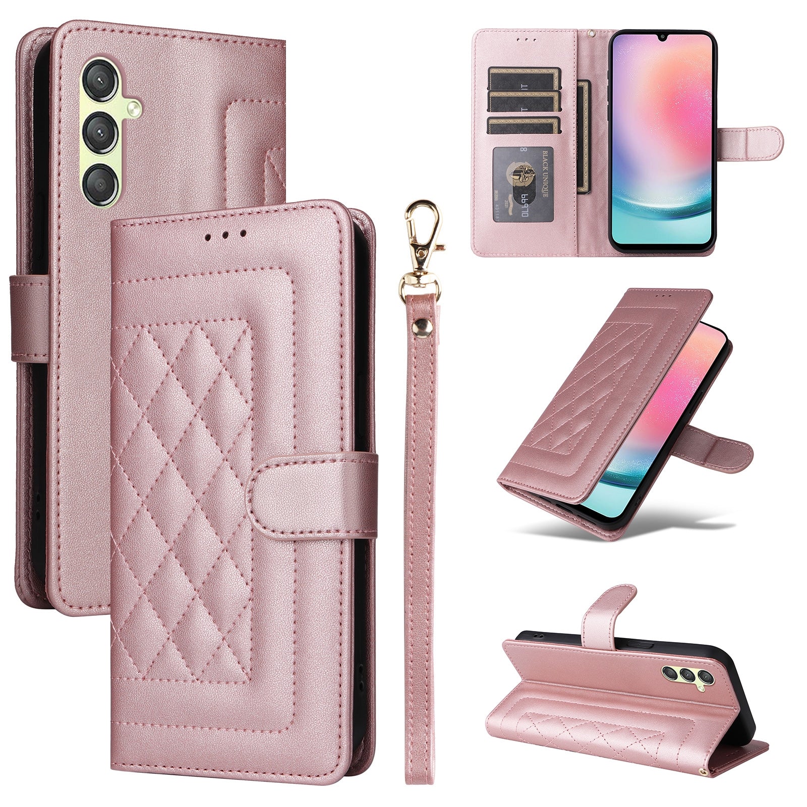 Samsung Galaxy A24 4G Diamond Lattice Leather Flip Phone Case - Durable and Convenient Holder with Precision Cutouts