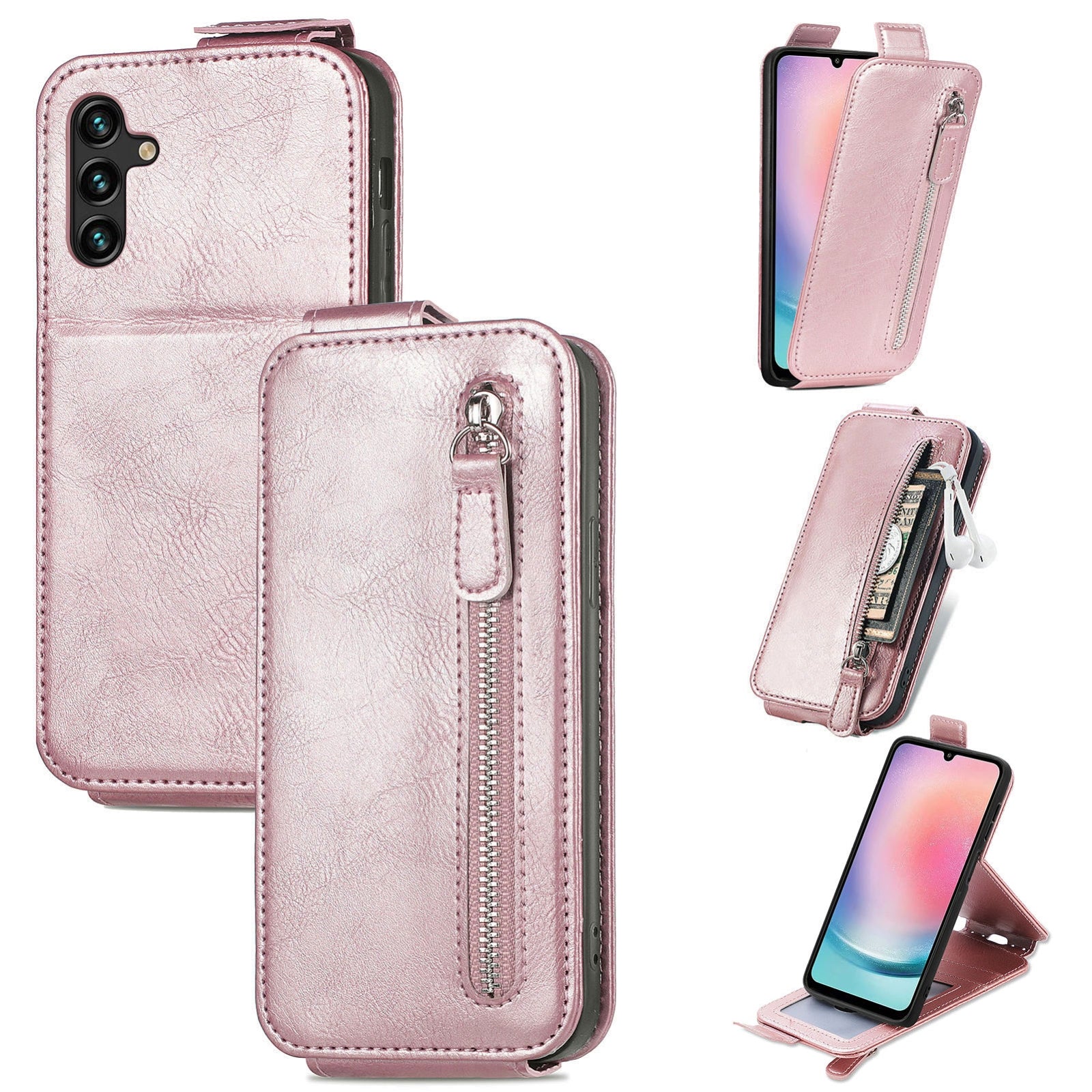 Samsung Galaxy A24 4G Zipper Wallet Case - Vertical Flip Leather Phone Cover with Multiple Card Slots and Stand