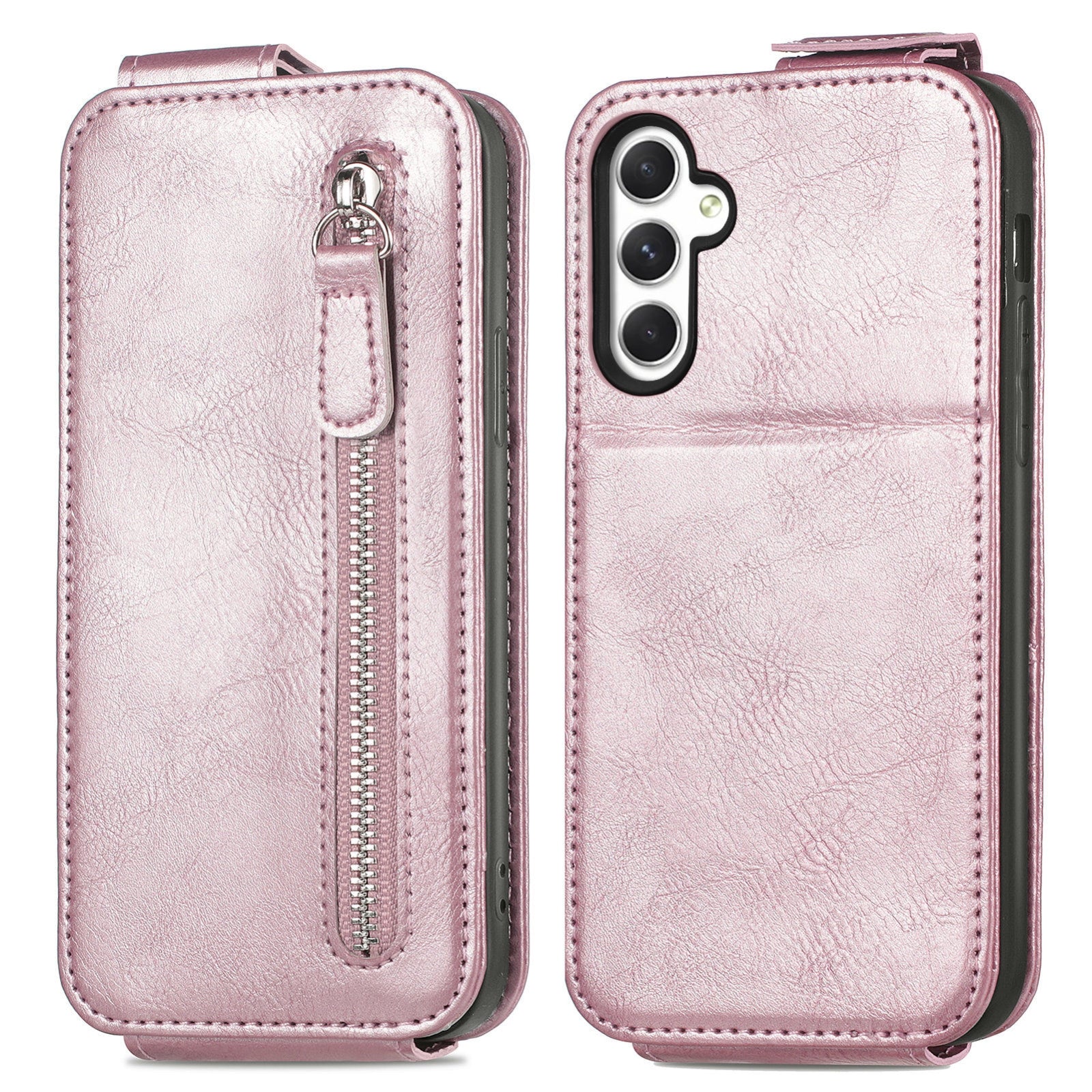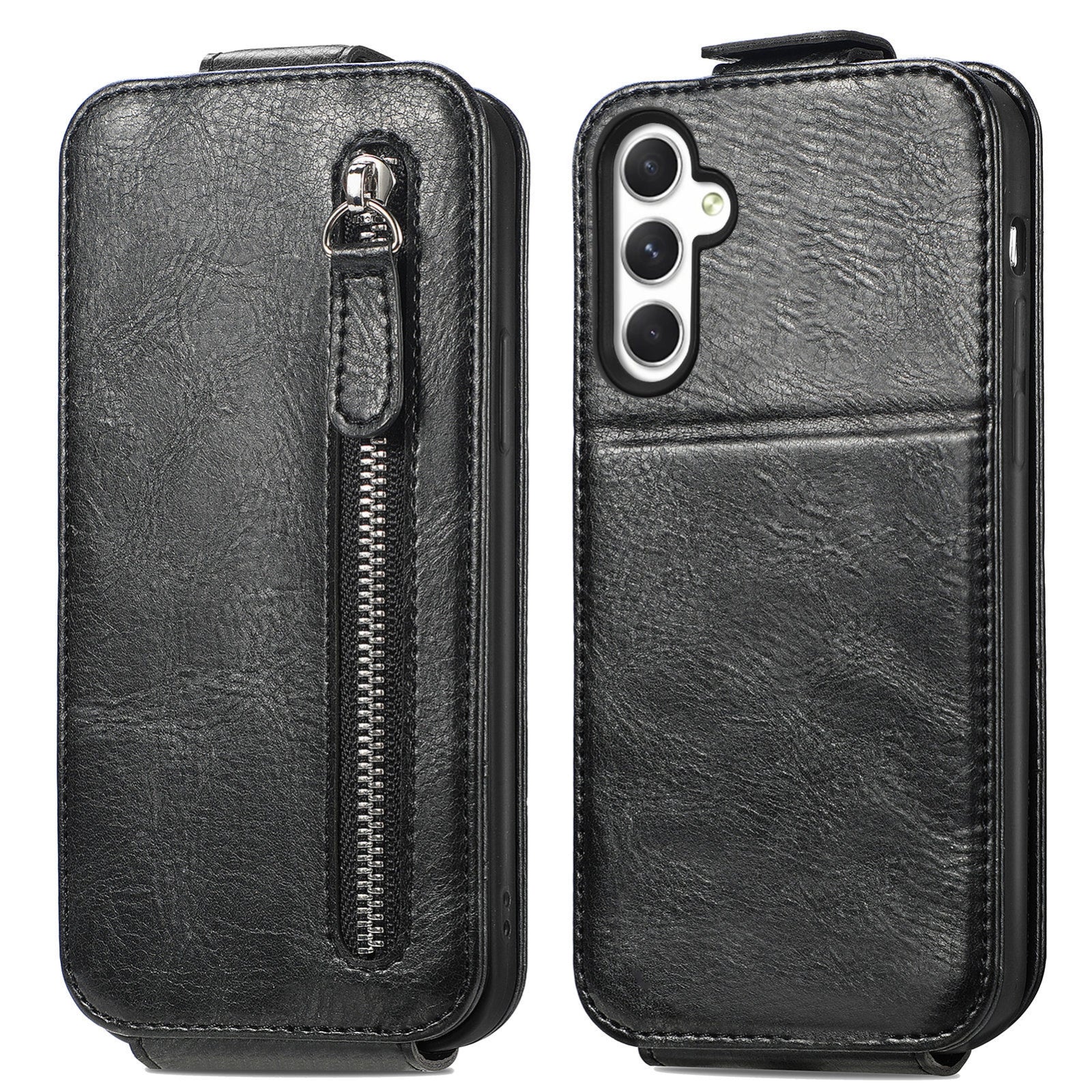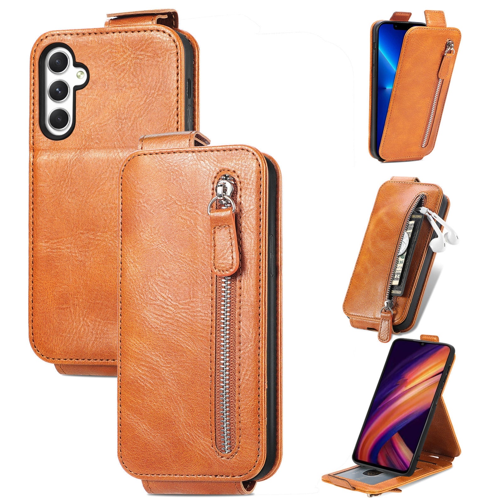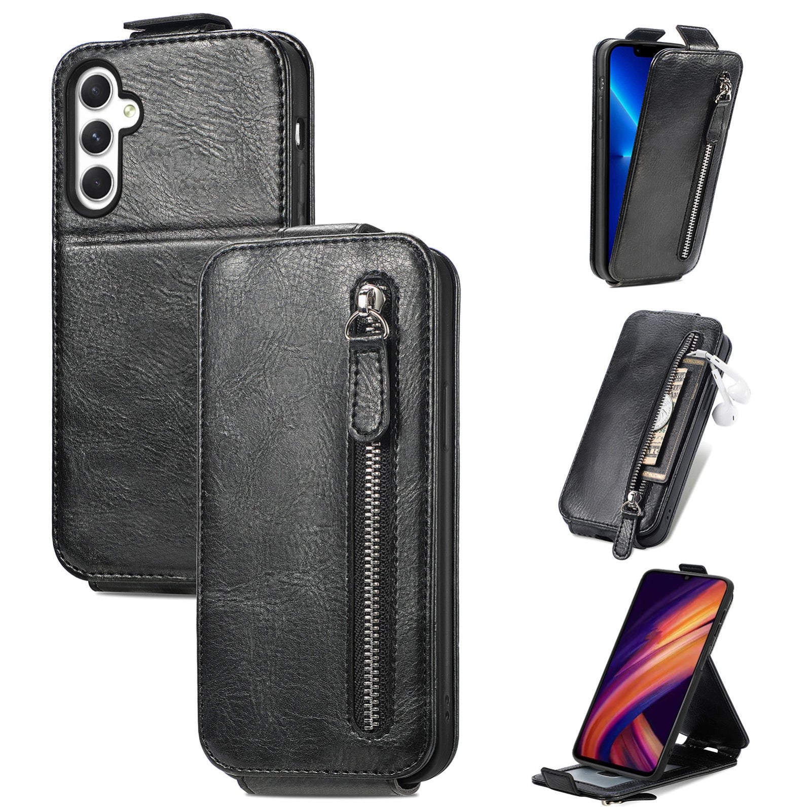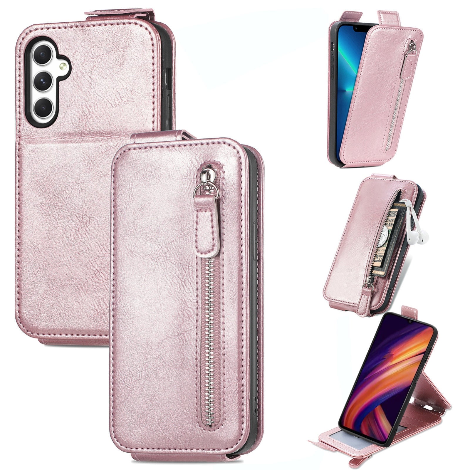 Samsung Galaxy A25 5G Zipper Wallet Case - Vertical Flip Leather Phone Cover with Multiple Card Slots and Stand