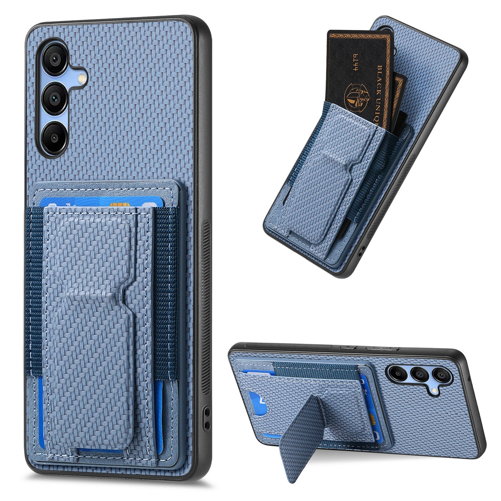 Samsung Galaxy A25 Carbon Fiber Fold Stand Elastic Card Bag Phone Case with Multi-Functional Wallet