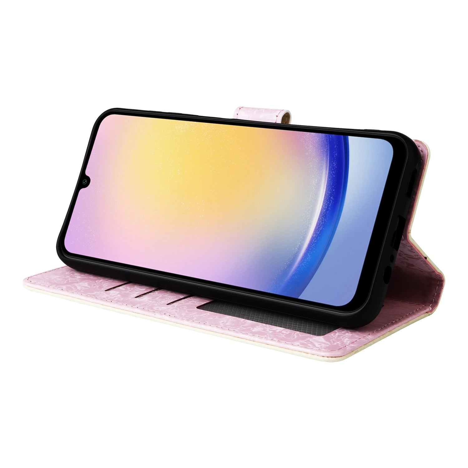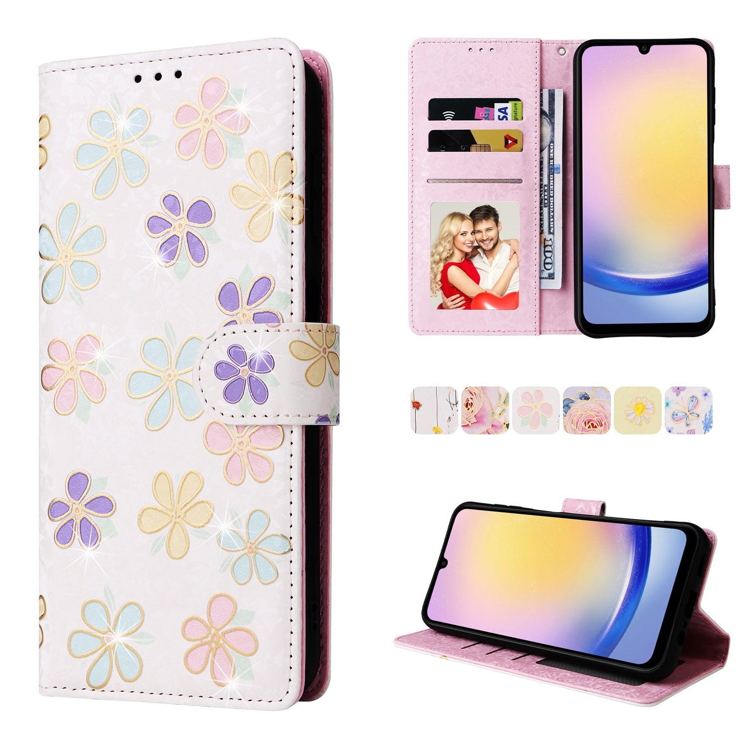 Samsung Galaxy A25 Luxury Bronzing Leather Case - Floral RFID Wallet Cover with Stand & Card Slots
