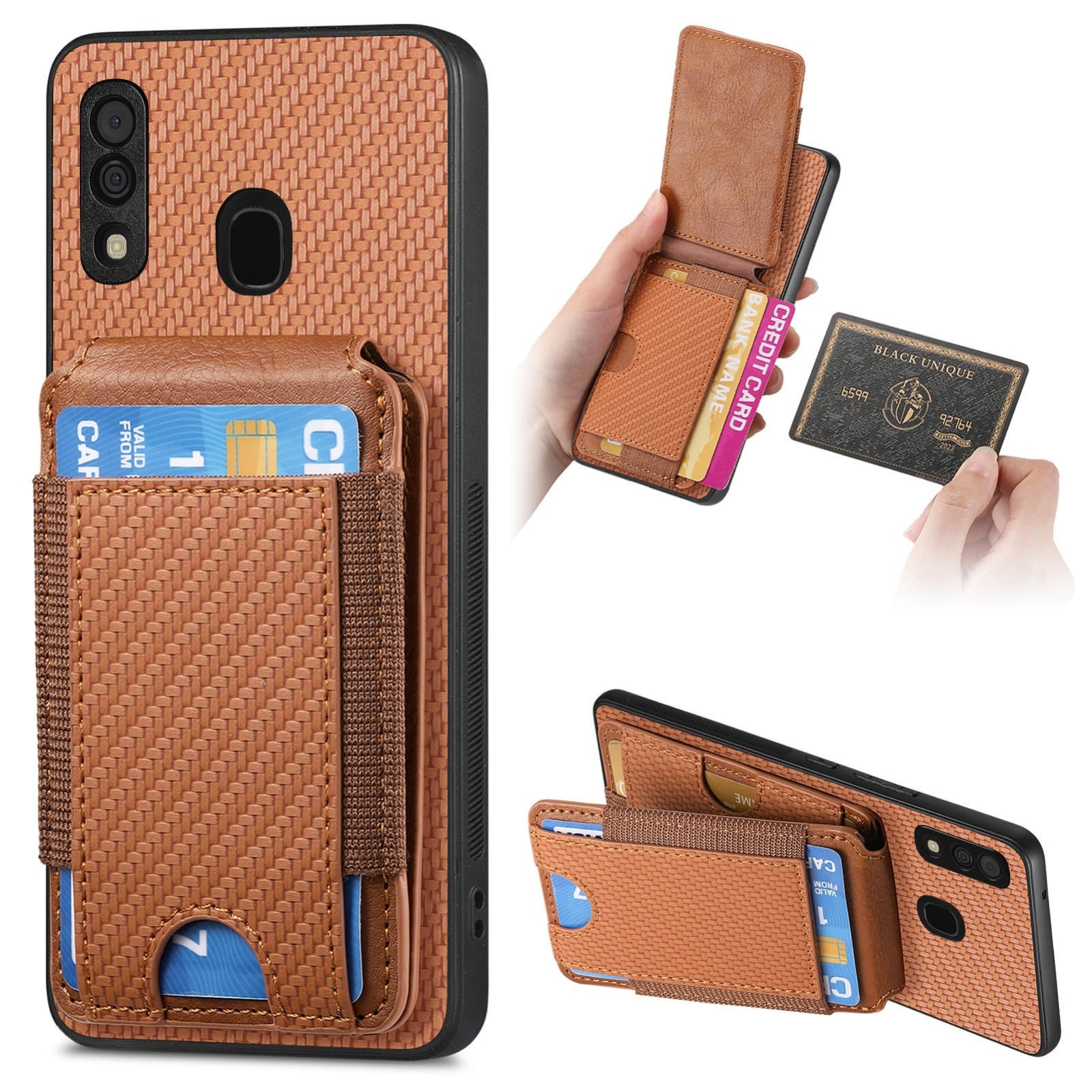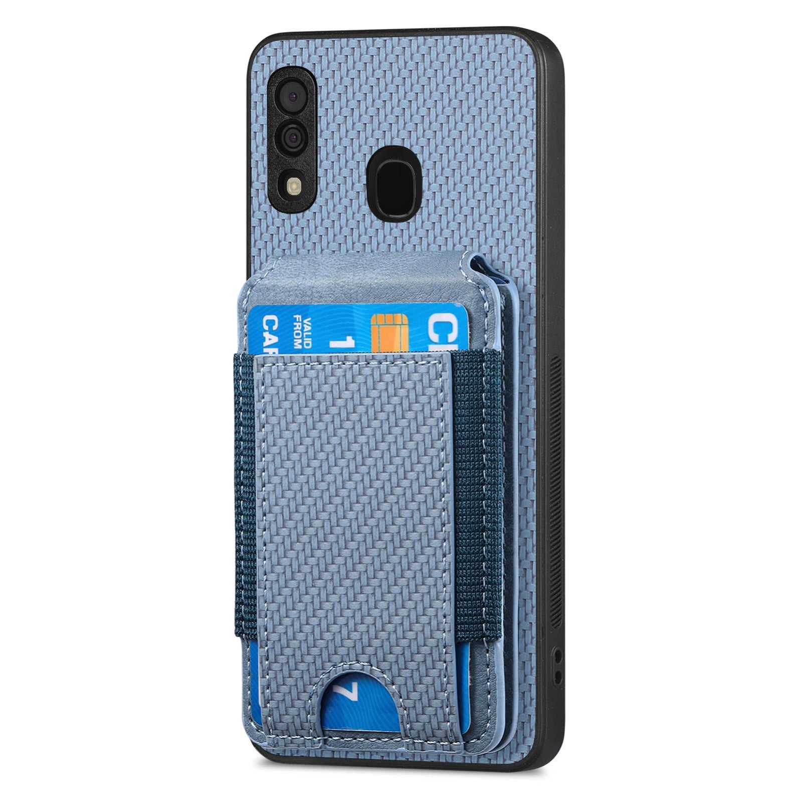 Samsung Galaxy A30 / A20 / M10s Vertical Flip Wallet Stand Phone Case with Carbon Fibre Pattern