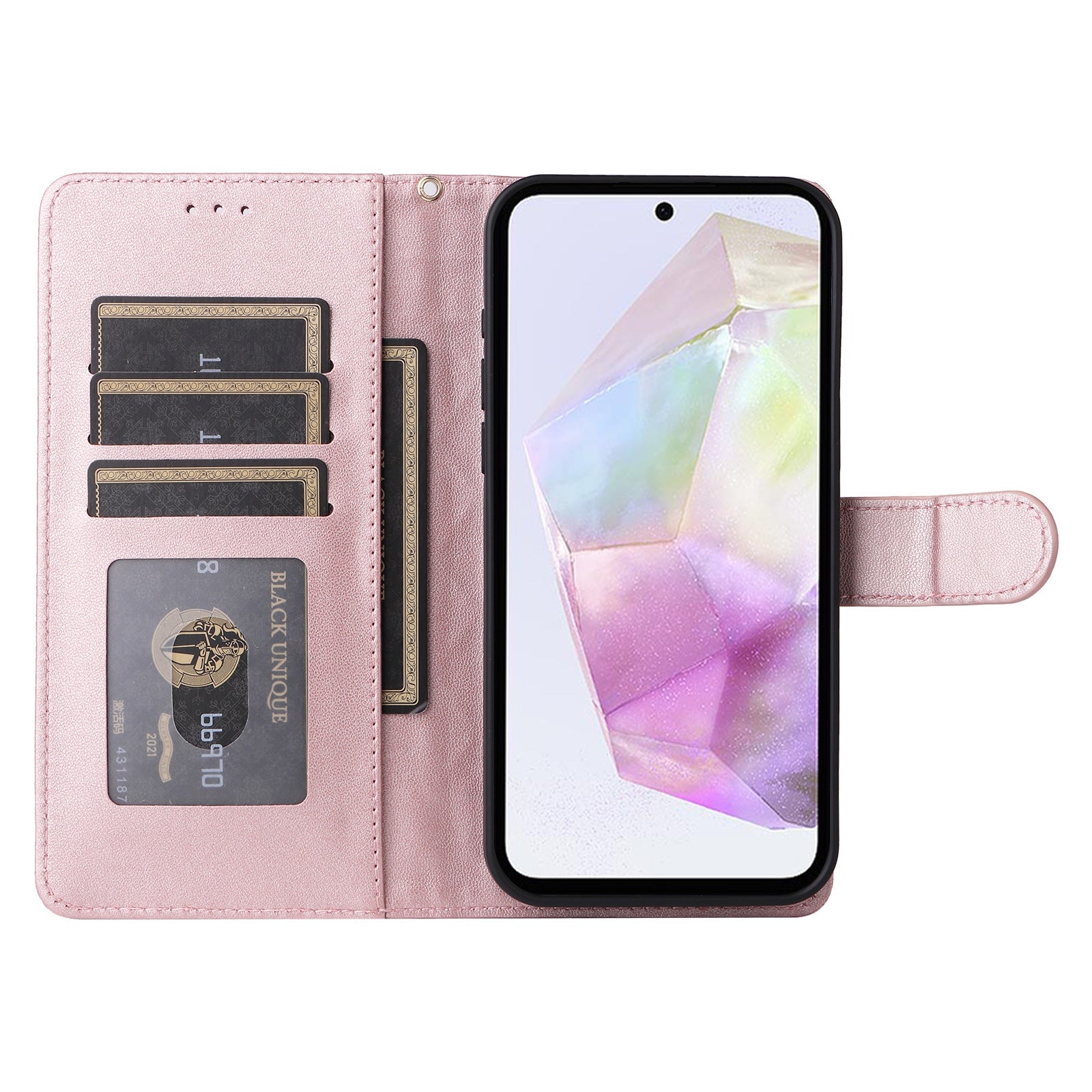 Introducing the ultimate companion for your Samsung Galaxy A35 - our Diamond Lattice Leather Flip Phone Case! Crafted from high-quality PU and TPU materials, this case is not only wear-resistant but also durable, ensuring long-lasting protection and style.