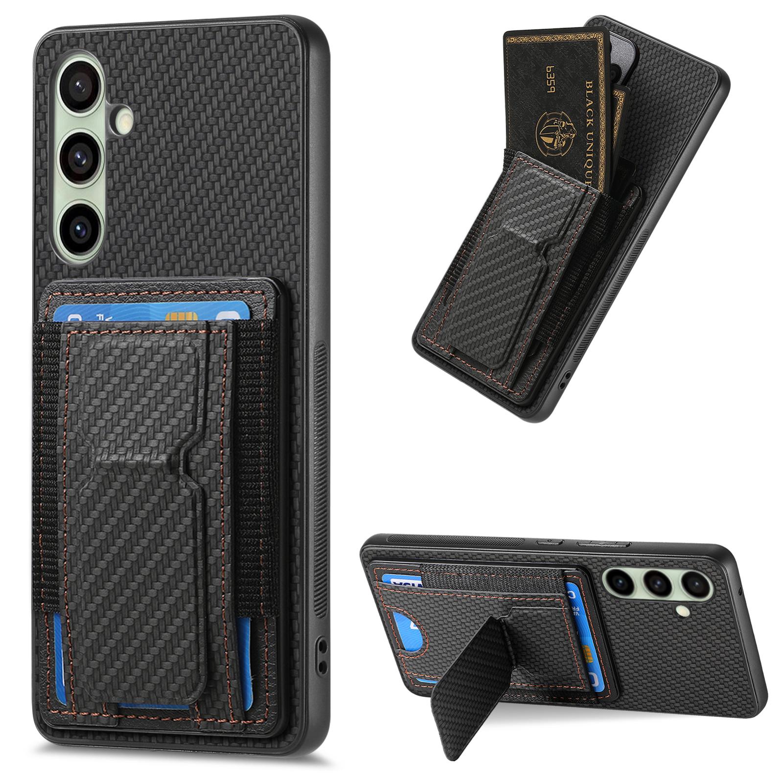 Samsung Galaxy A36 Carbon Fiber Fold Stand Elastic Card Bag Phone Case with Multi-Functional Wallet