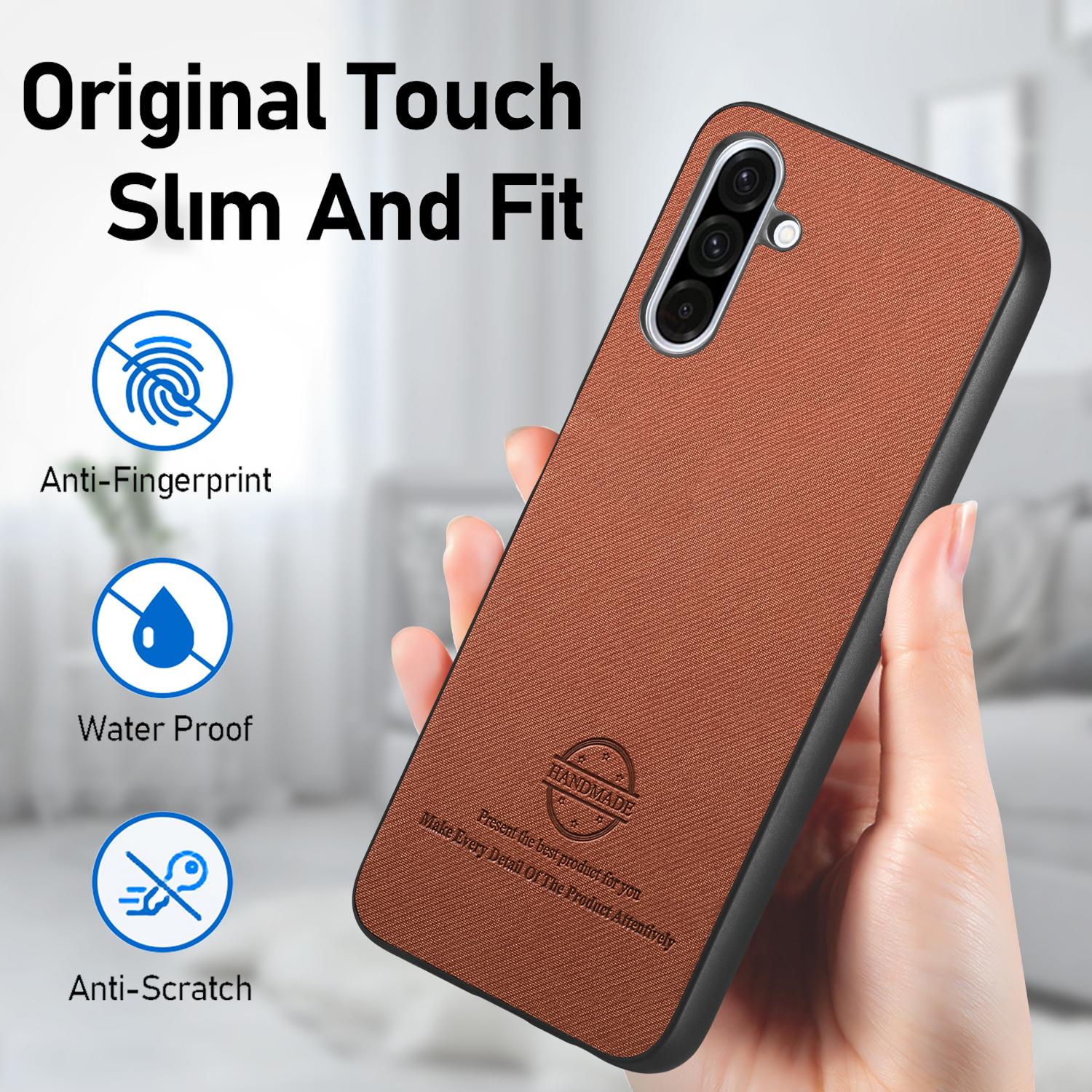 Samsung Galaxy A56 5G Case - Vegan Leather and Twill Fabric Skin with Anti-Scratch and Drop Protection Back Phone Case