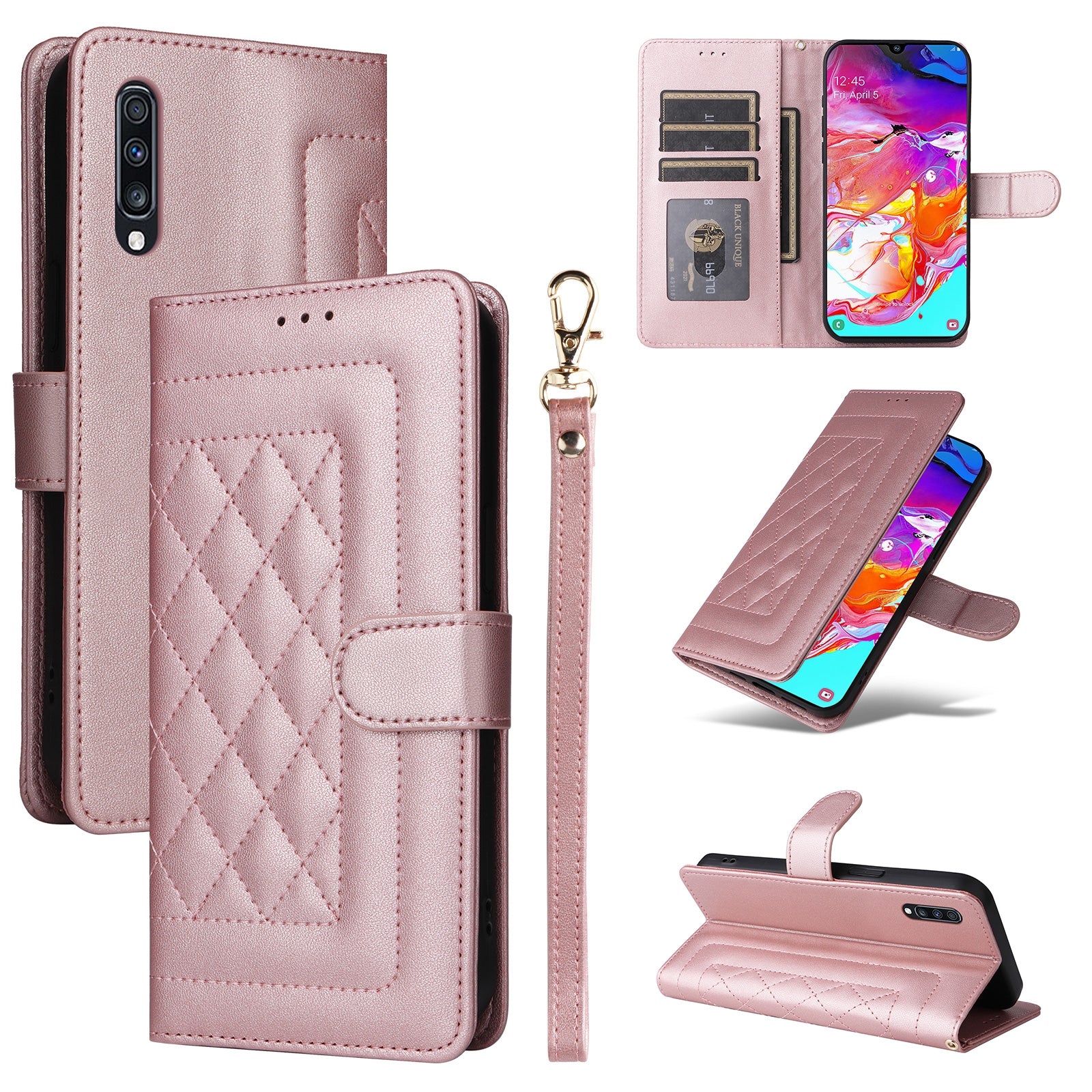 Samsung Galaxy A70 Diamond Lattice Leather Flip Phone Case - Durable and Convenient Holder with Precision Cutouts