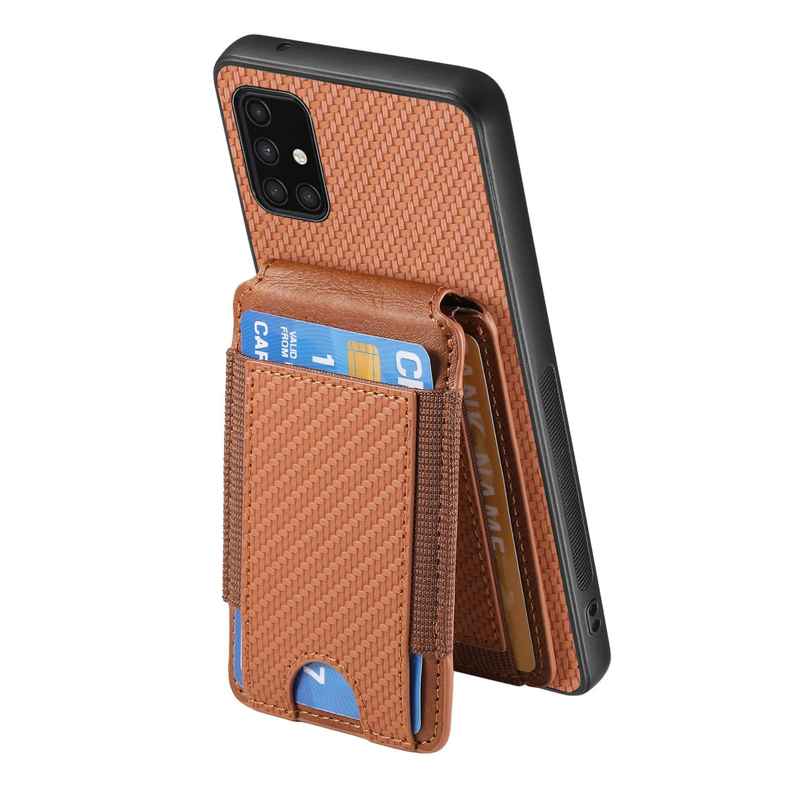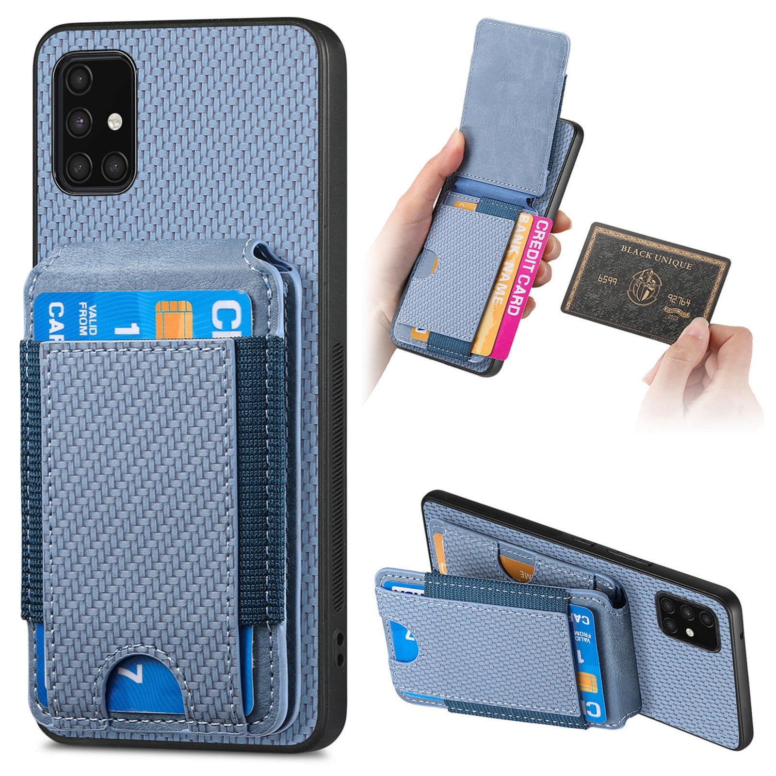 Samsung Galaxy A71 4G Vertical Flip Wallet Stand Phone Case with Carbon Fibre Pattern