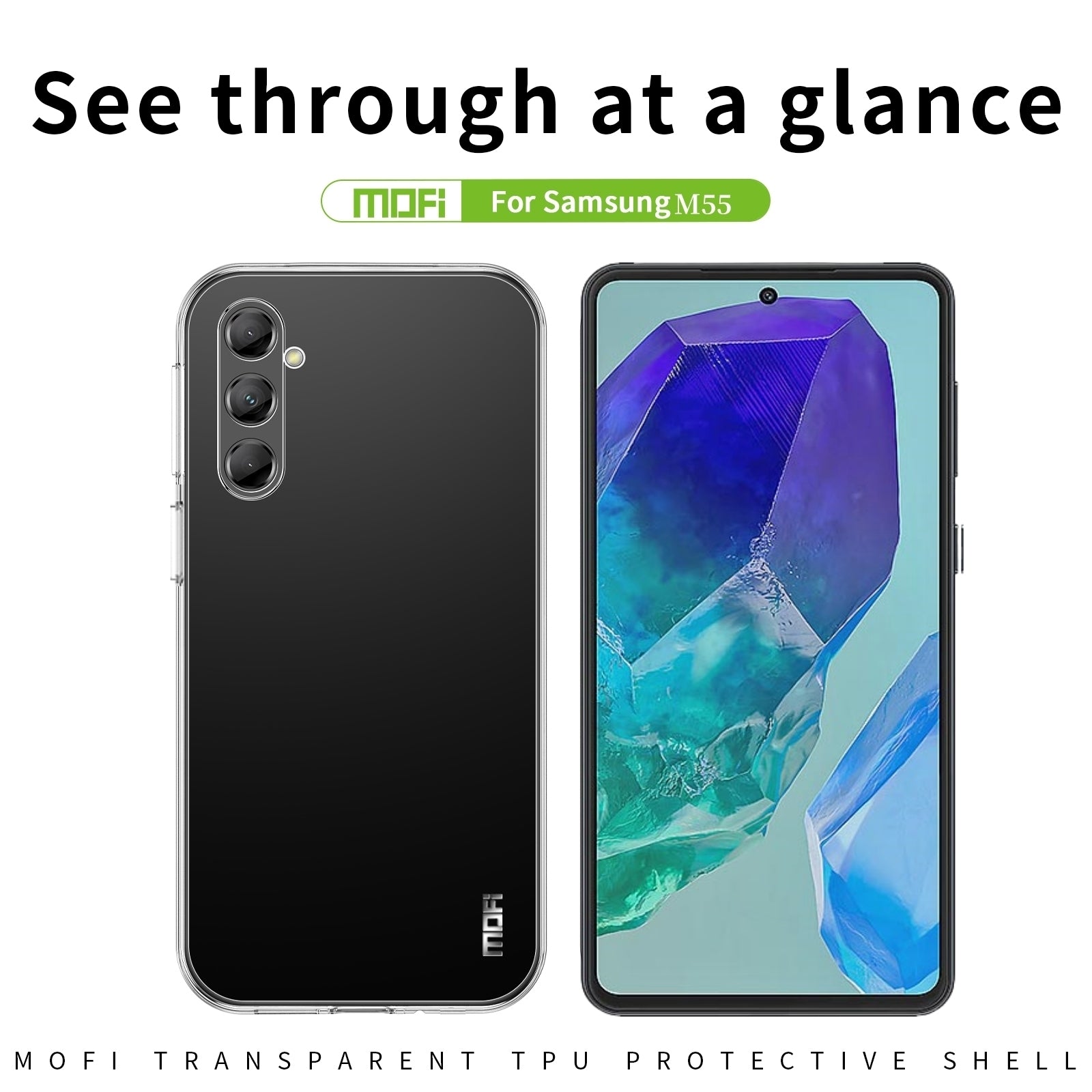 Samsung Galaxy M55 Clear TPU Case - Ultra-Thin, Shockproof, Anti-Yellowing Transparent Soft Protective Cover with Precise Cutouts, Scratch Resistance & Lightweight Design