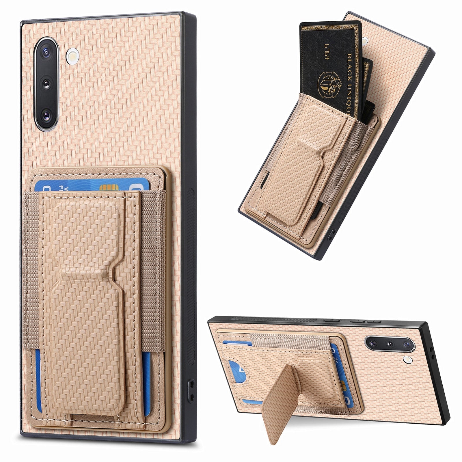 Samsung Galaxy Note10 Carbon Fiber Fold Stand Elastic Card Bag Phone Case with Multi-Functional Wallet