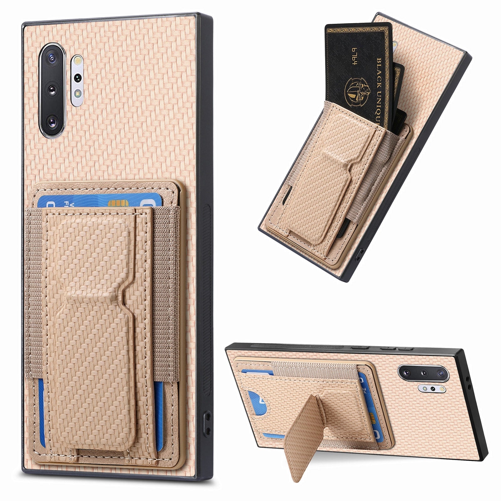 Samsung Galaxy Note10+ Carbon Fiber Fold Stand Elastic Card Bag Phone Case with Multi-Functional Wallet