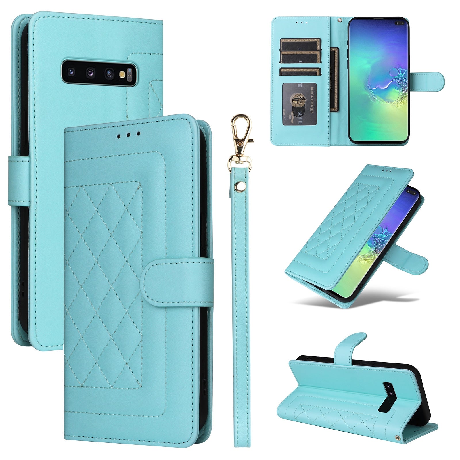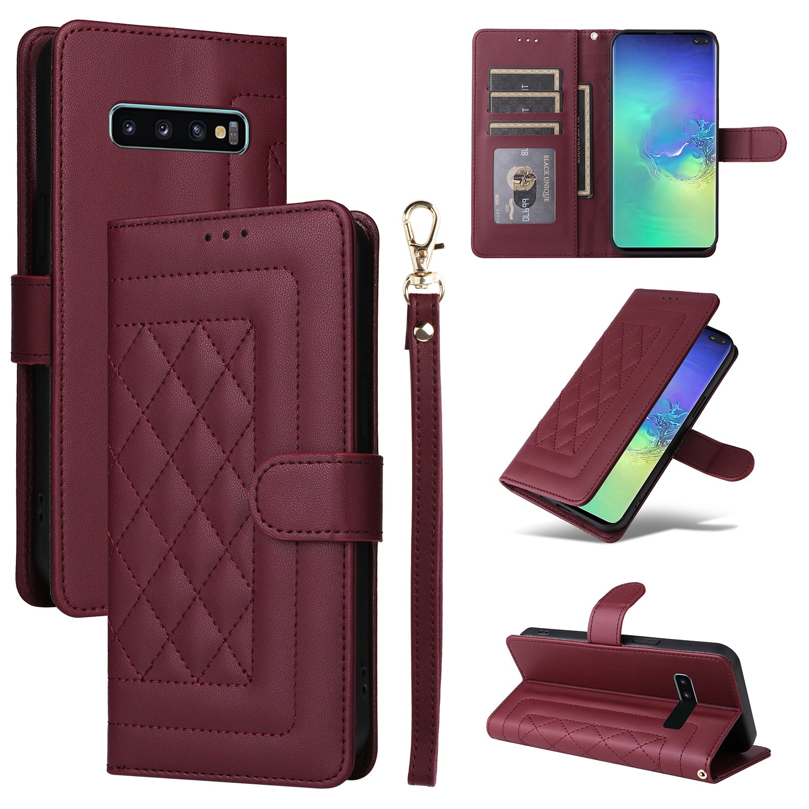 Introducing the ultimate companion for your Samsung Galaxy S10+ - our Diamond Lattice Leather Flip Phone Case! Crafted from high-quality PU and TPU materials, this case is not only wear-resistant but also durable, ensuring long-lasting protection and style.