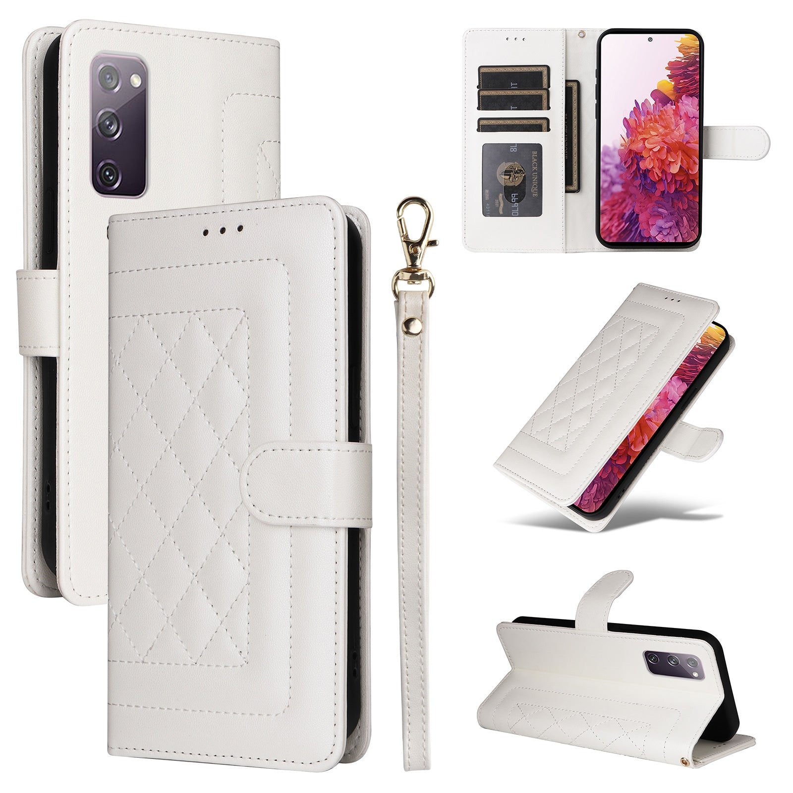 Introducing the ultimate companion for your Samsung Galaxy S20 FE - our Diamond Lattice Leather Flip Phone Case! Crafted from high-quality PU and TPU materials, this case is not only wear-resistant but also durable, ensuring long-lasting protection and style.