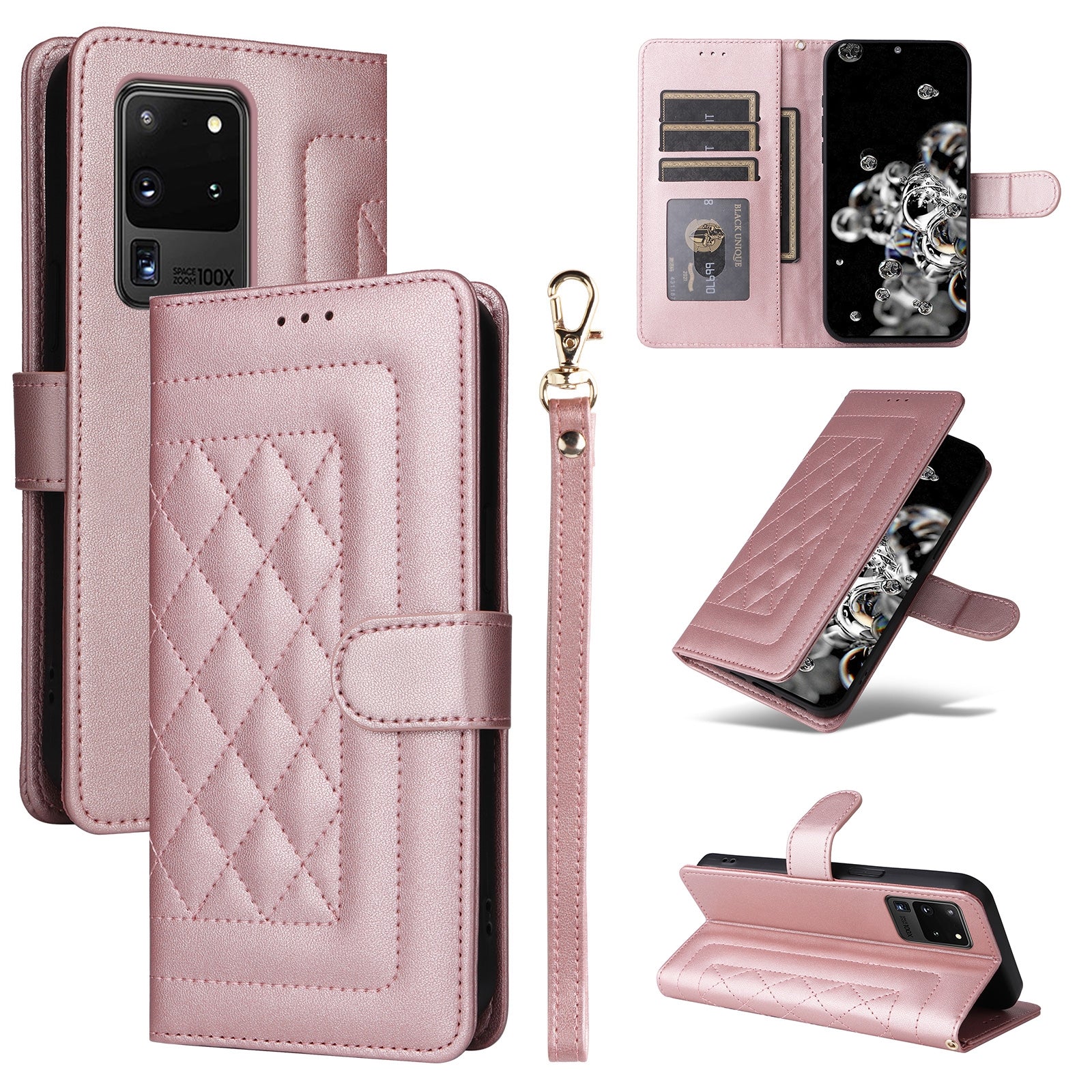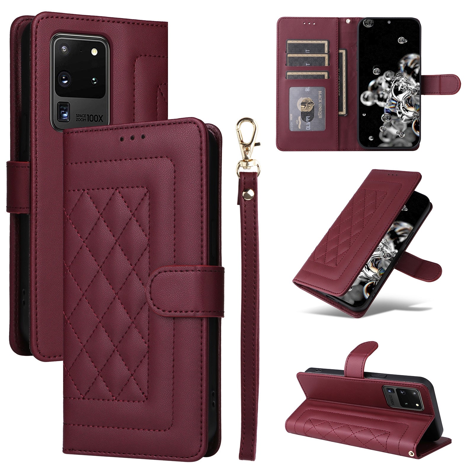 Samsung Galaxy S20 Ultra Diamond Lattice Leather Flip Phone Case - Durable and Convenient Holder with Precision Cutouts