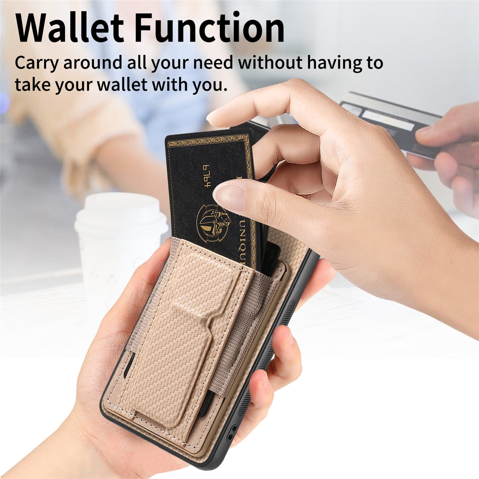 Samsung Galaxy S21+ 5G Carbon Fiber Fold Stand Elastic Card Bag Phone Case with Multi-Functional Wallet