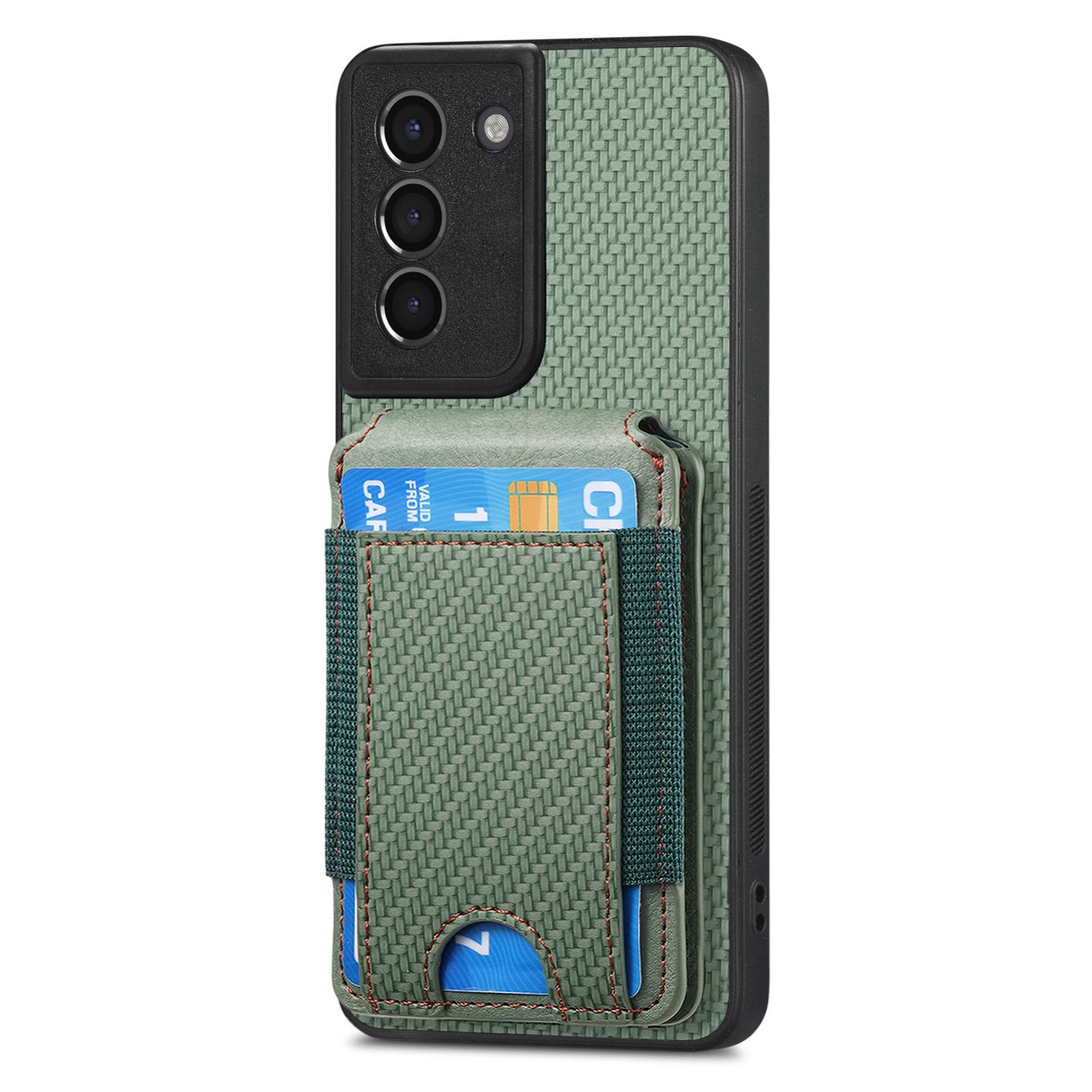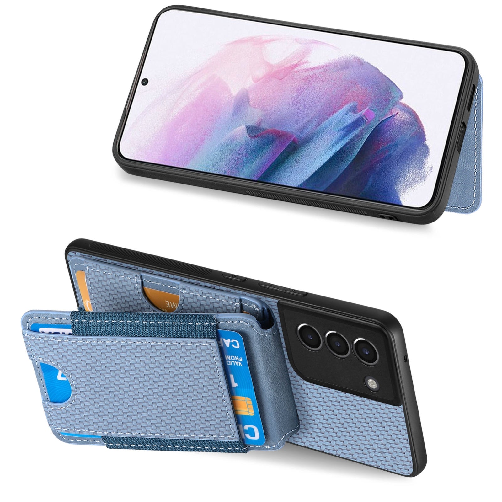 Samsung Galaxy S21+ 5G Vertical Flip Wallet Stand Phone Case with Carbon Fibre Pattern