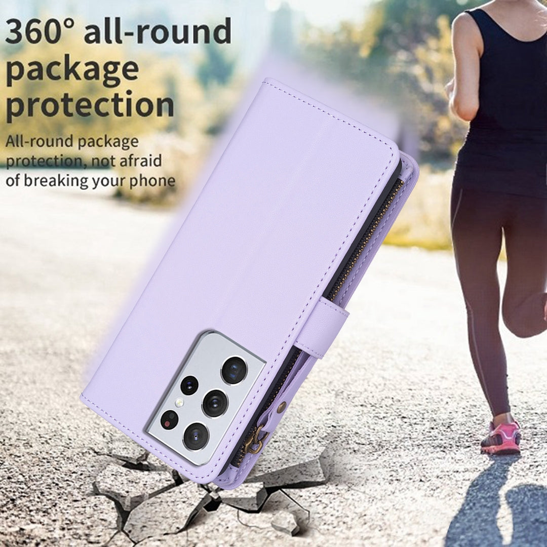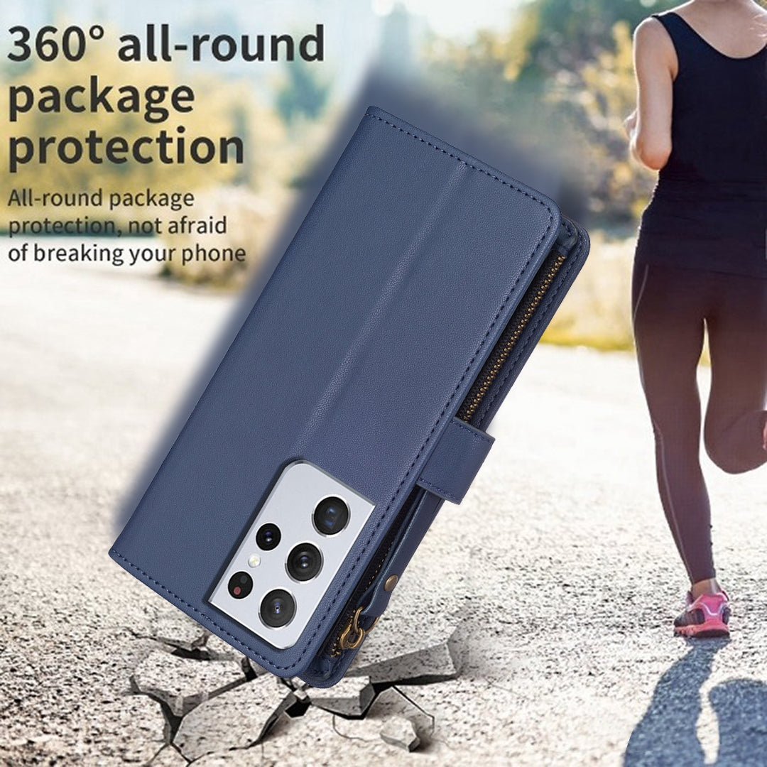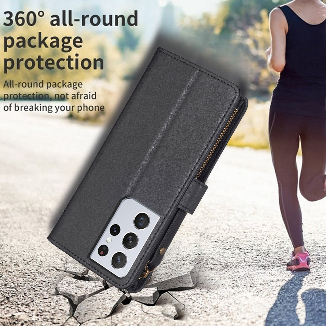 Samsung Galaxy S21 Ultra 5G Leather Flip Phone Case with Zipper Wallet and 9 Card Slots, Durable PU + TPU Material