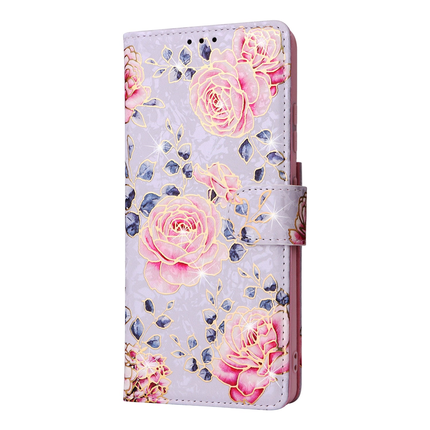Samsung Galaxy S21 Ultra Luxury Bronzing Leather Case - Floral RFID Wallet Cover with Stand & Card Slots
