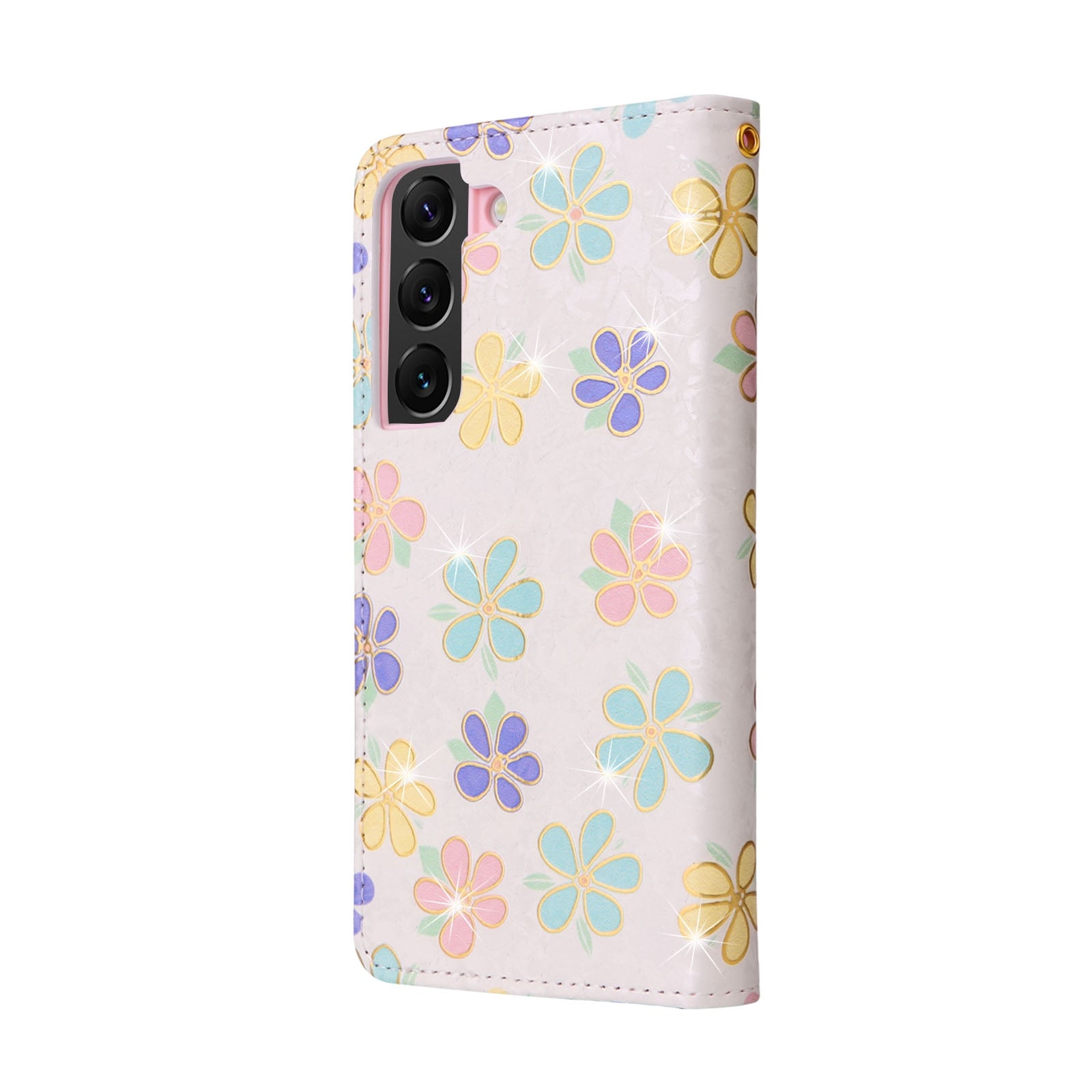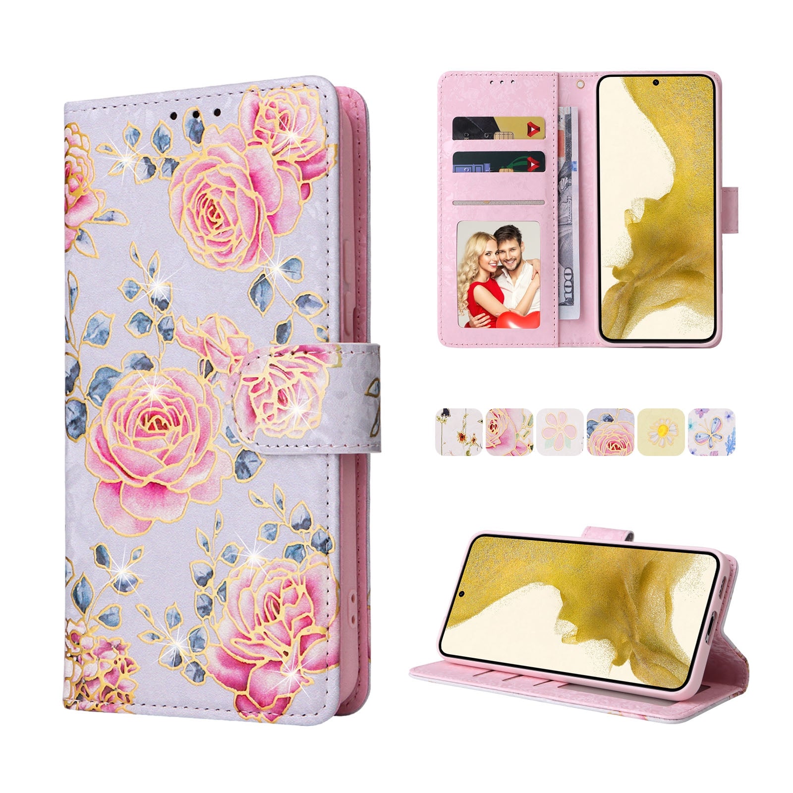 Samsung Galaxy S22 Plus Luxury Bronzing Leather Case - Floral RFID Wallet Cover with Stand & Card Slots